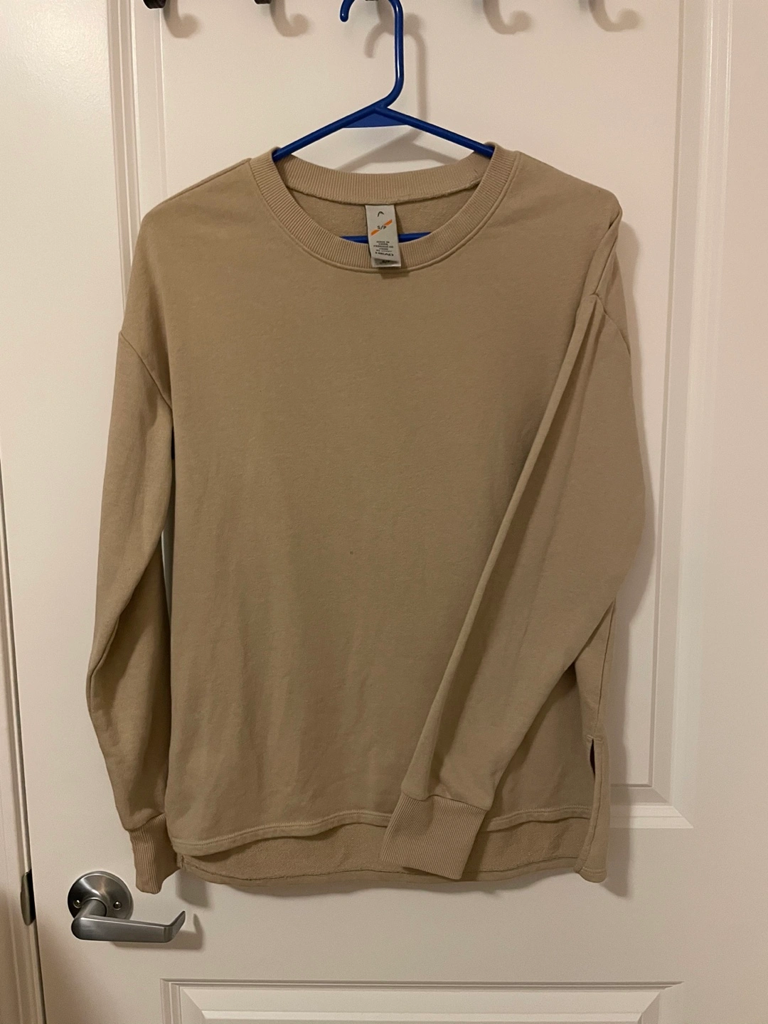 Long sleeve, crew neck top. Beige colour. Size Medium/Large.