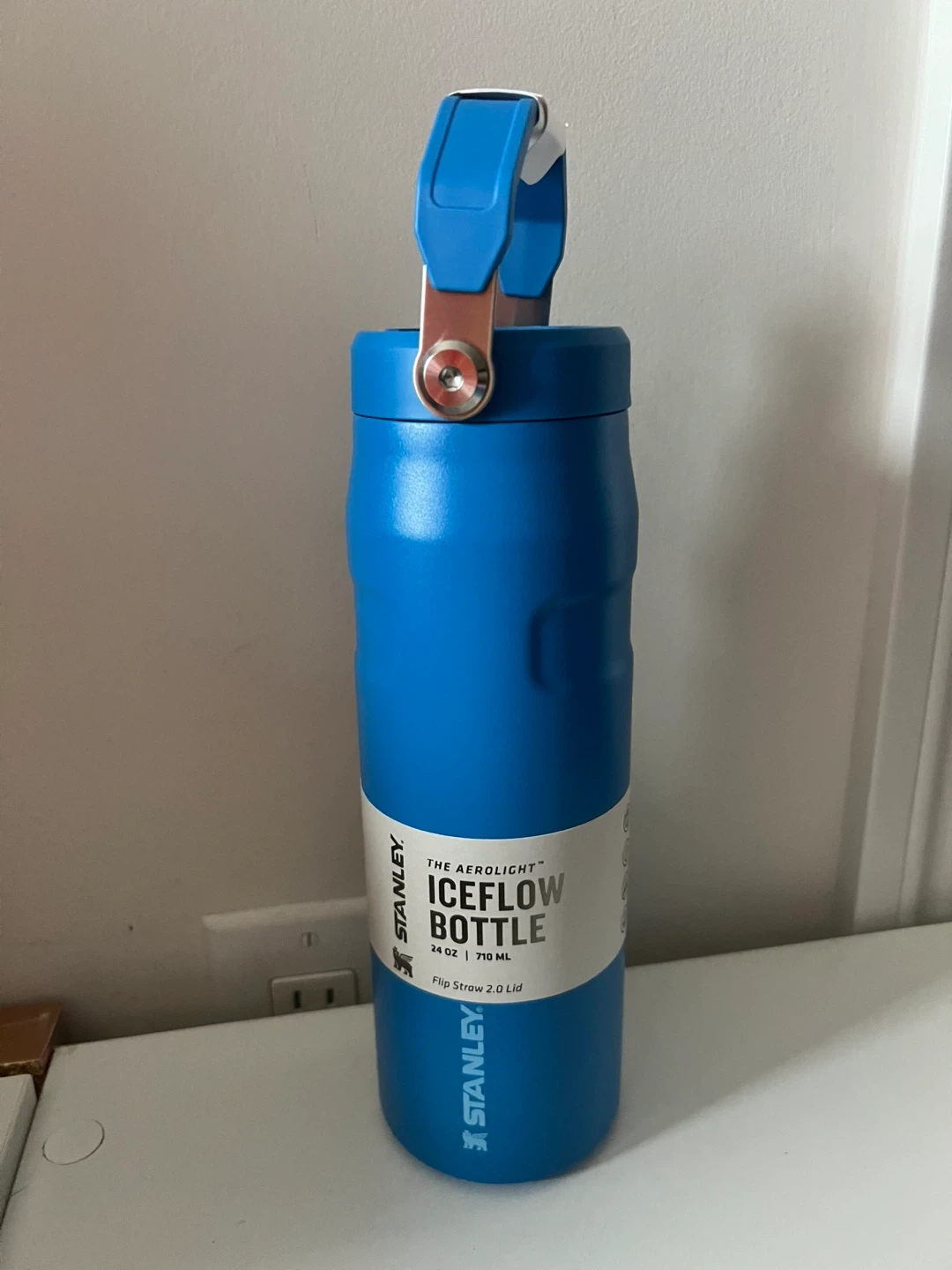 This is a Stanley Aerolight IceFlow bottle with a flip straw 2.0 lid. It's 24 oz or 710 mL and made with Aerolight technology. The bottle is BPA-free and dishwasher safe.