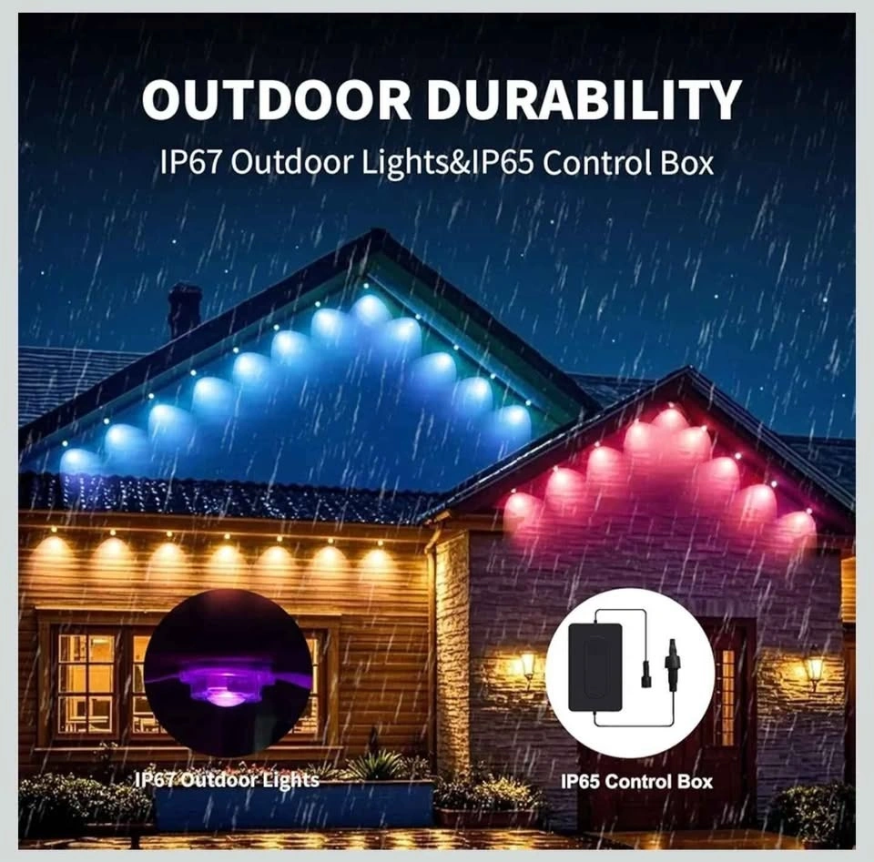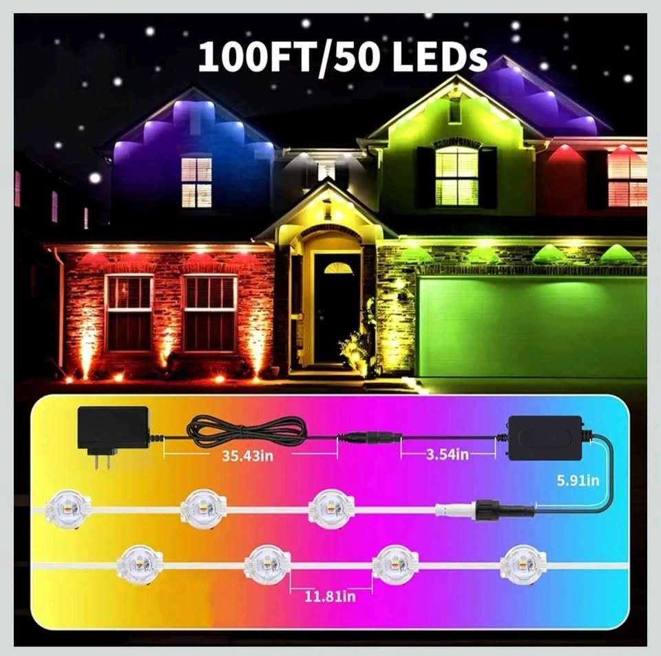 100FT Permanent Outdoor RGB Lights - IP67 Waterproof