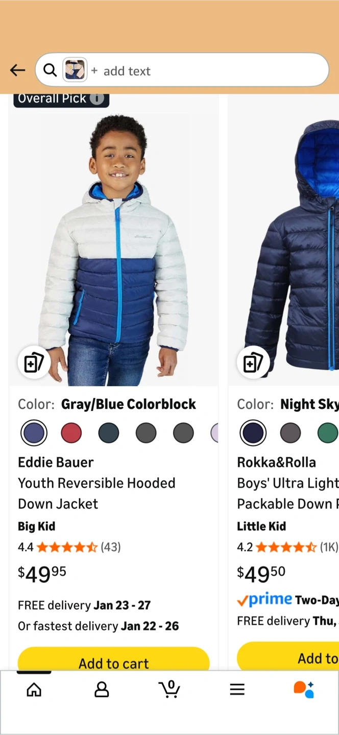 This is an Eddie Bauer Youth light Reversible Hooded Down Jacket. It's a gray/blue colorblock and size S/7-8. It's new