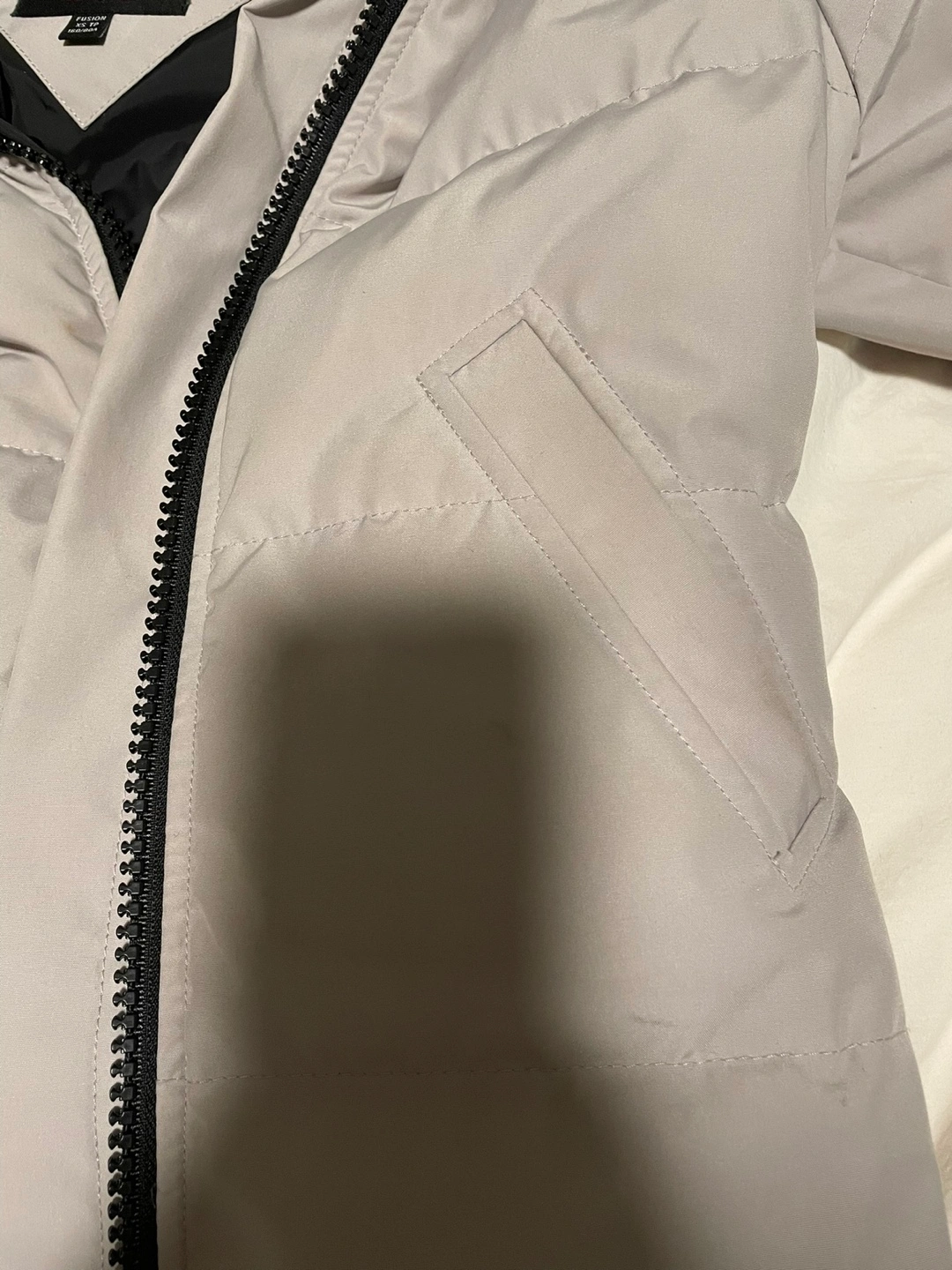Long down jacket with fur hood, black zipper and black inner lining. Has only been worn a handful of times. Excellent used condition.