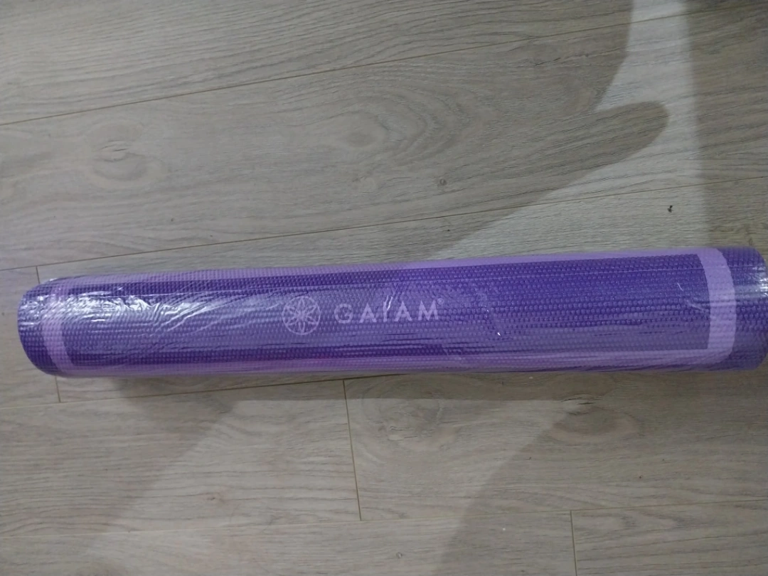 Purple yoga mat. Rolled up and wrapped in plastic. NEW. Original price $35 plus tax, now selling for $25