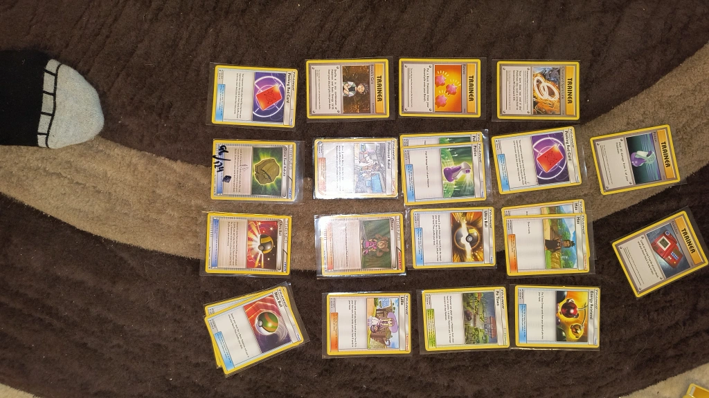 A lot of Pokemon cards, mostly from the XY era. Some trainers, a few holos. All in decent condition.90%imediately inserted into sleeves upon acquiring.100 pack of new sleeves included.a few magic cards as a bonus.the sleeves are no longer available as I filled them with more cards.tbe price remains but the count increased its like reversed inflation.