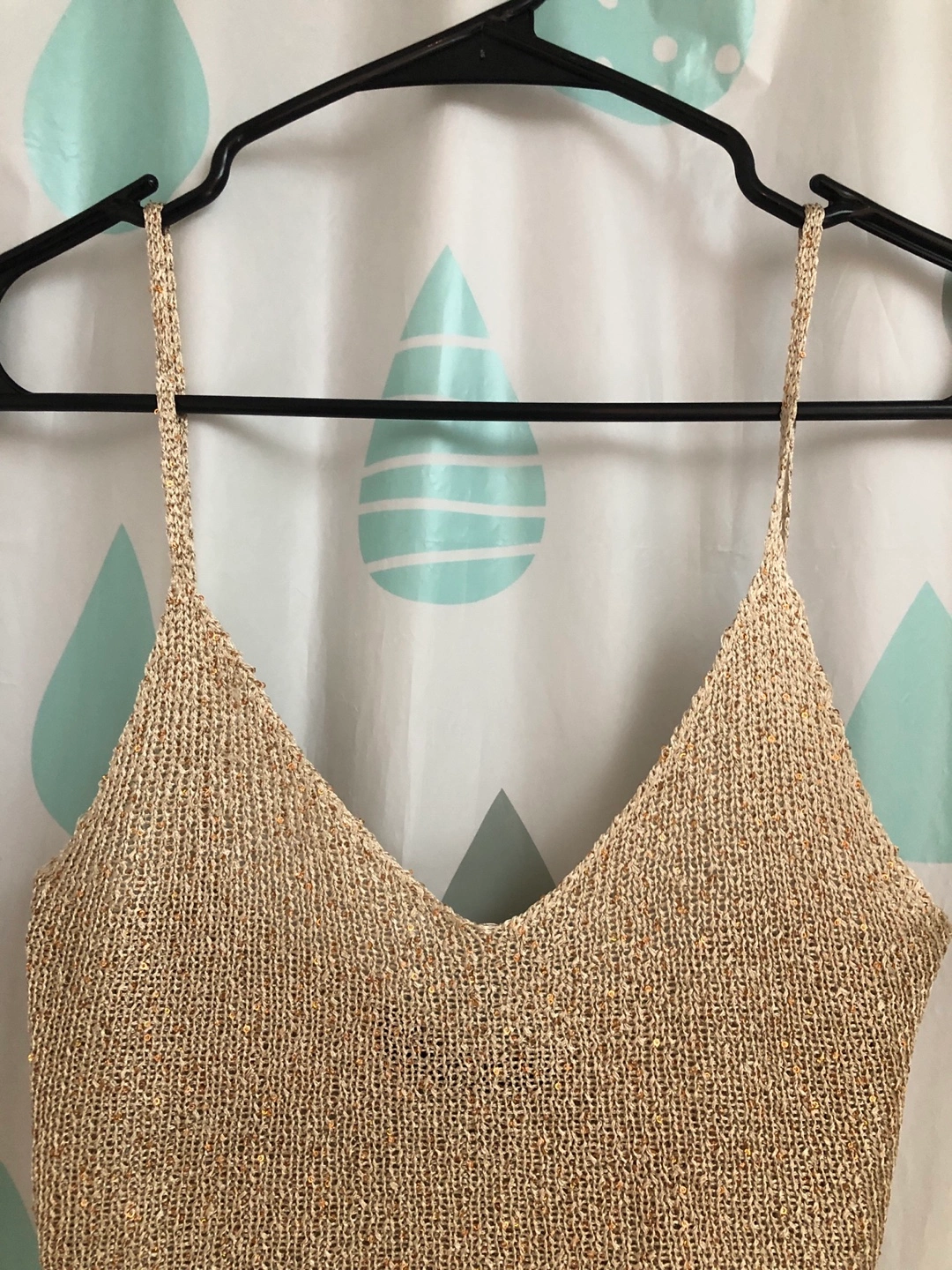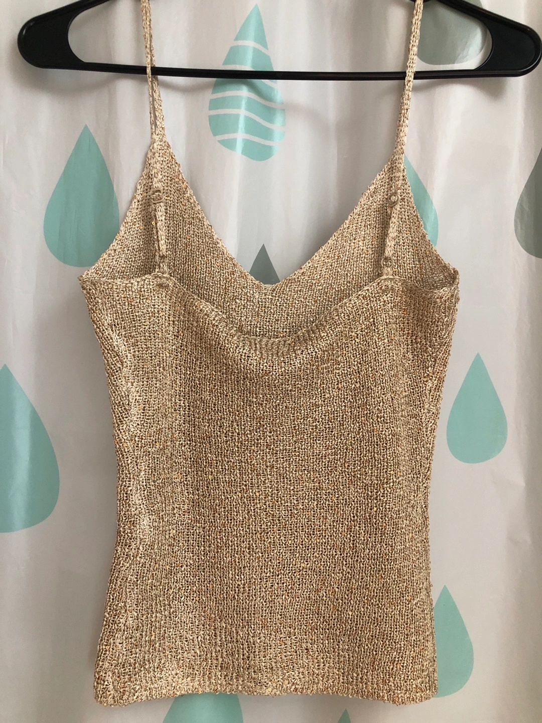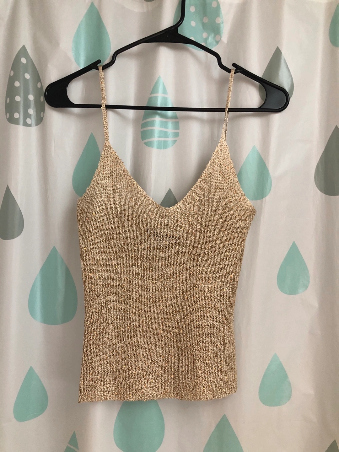 Gold glitter tank top. Size XS. Free shipping: If you spend more than 20 dollars in my list, you can get free shipping ( only in the old Toronto) Not including furniture. Downtown pick up Cash only