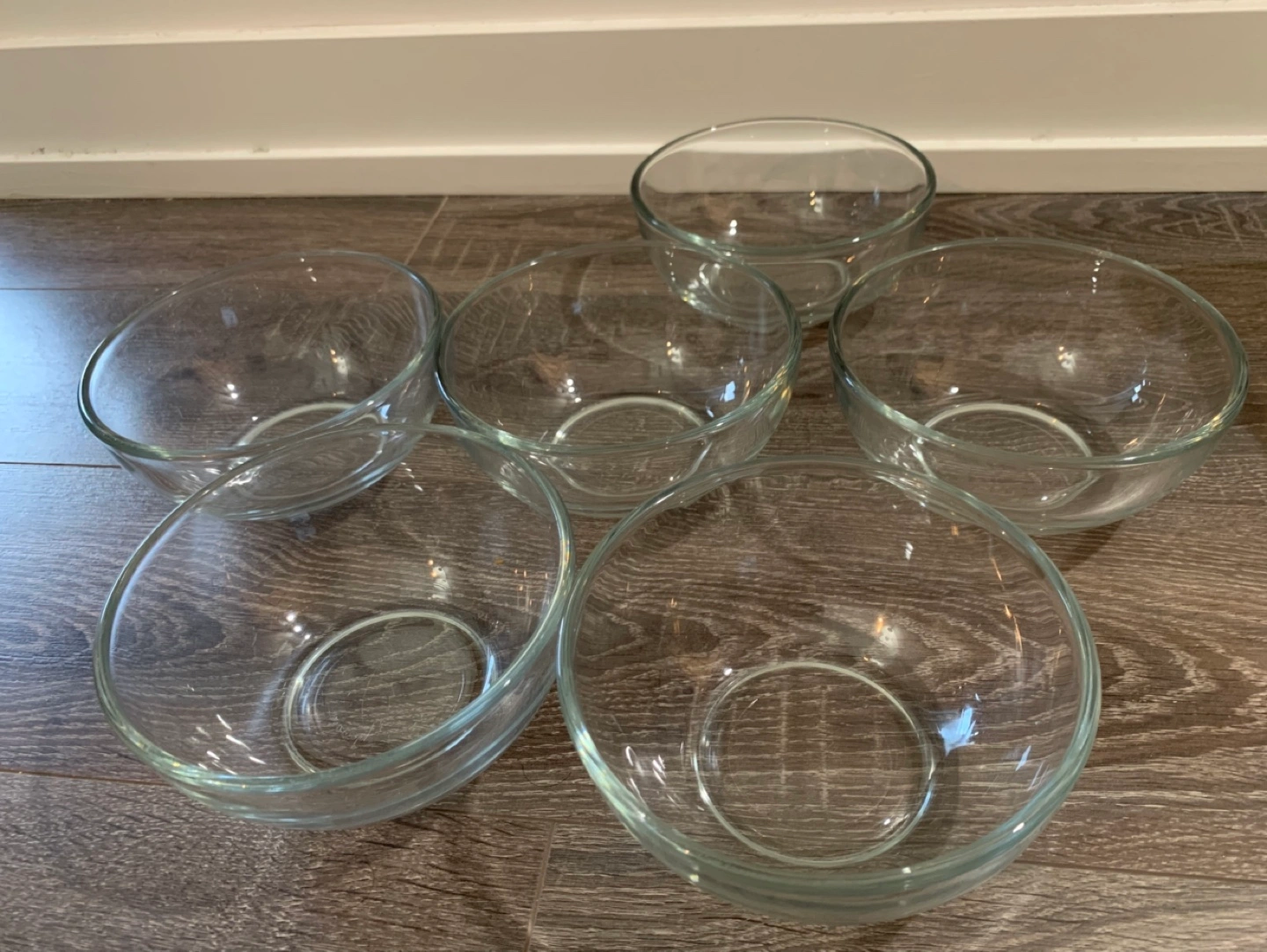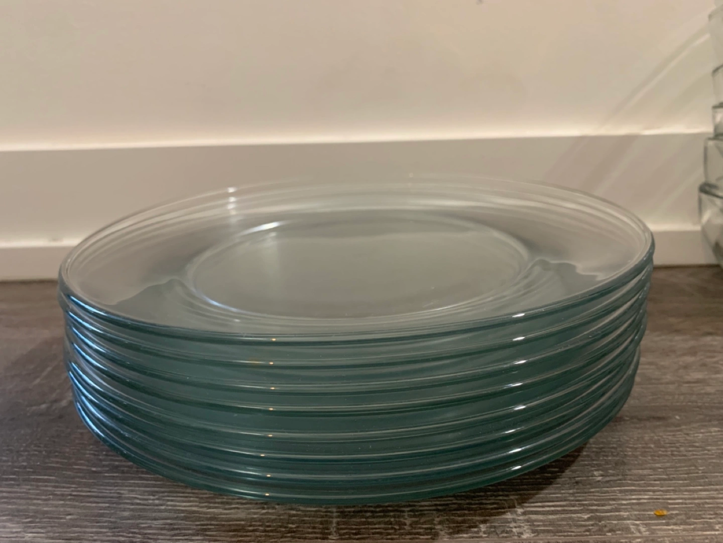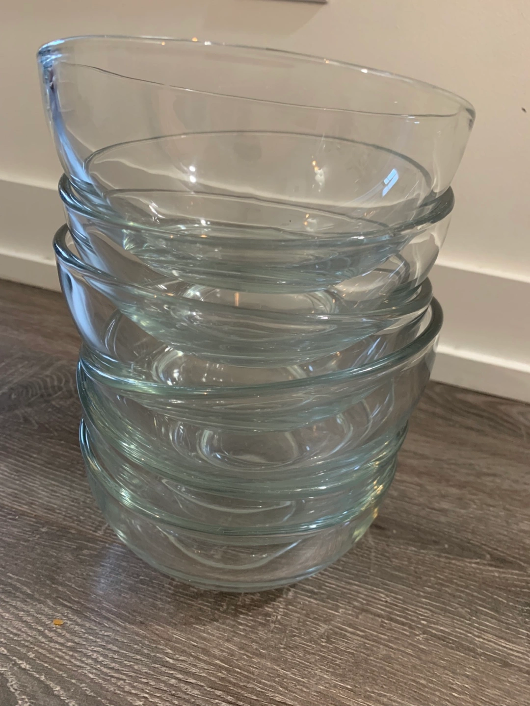 Set of 10 clear glass plates and 6 clear glass bowls. Good condition.