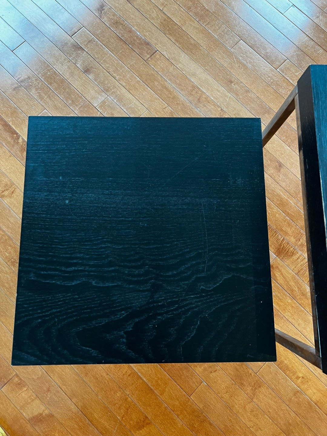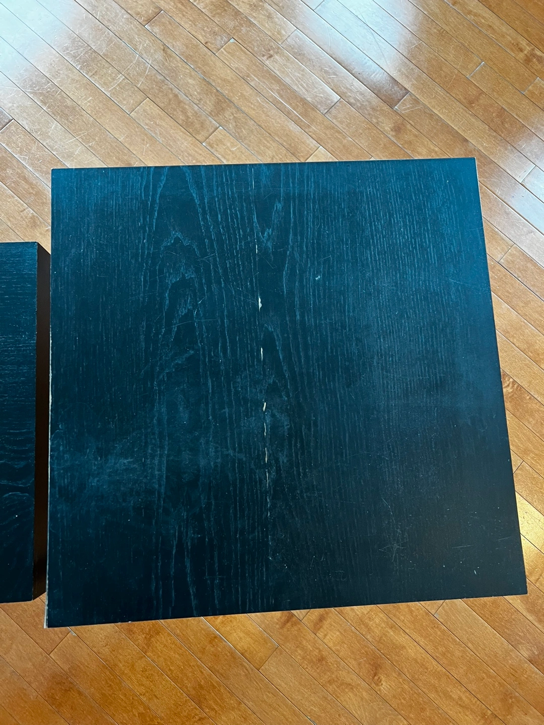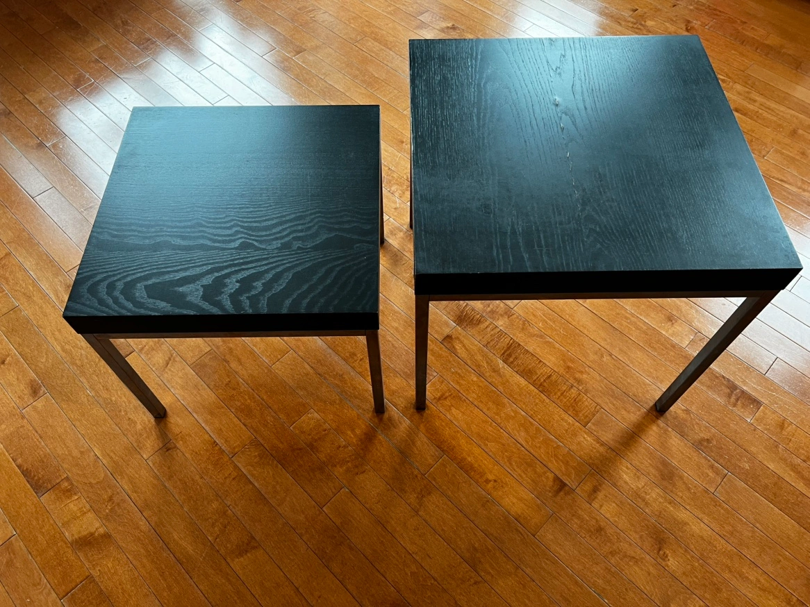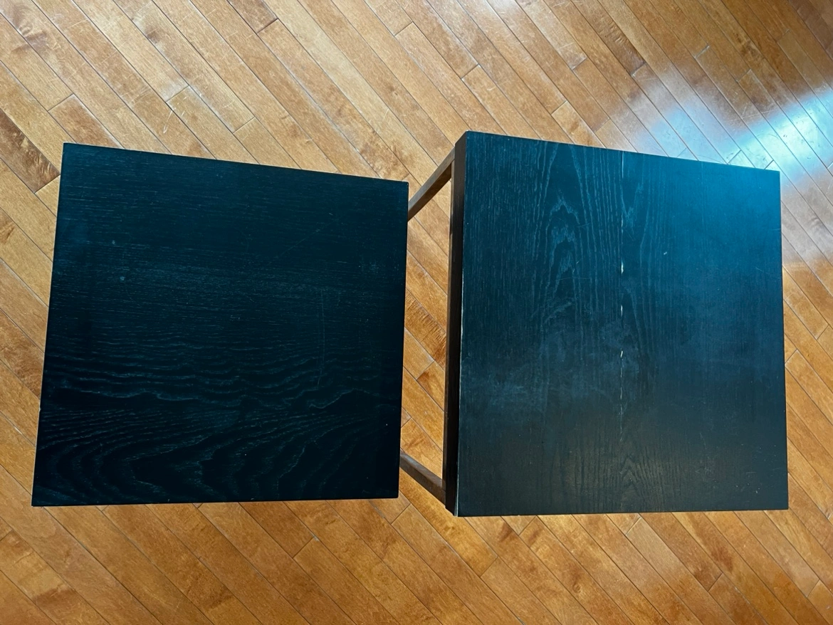 Set of 2 black nesting tables. Wood and metal. Good condition, some minor scratches on the surface. Pick up only.