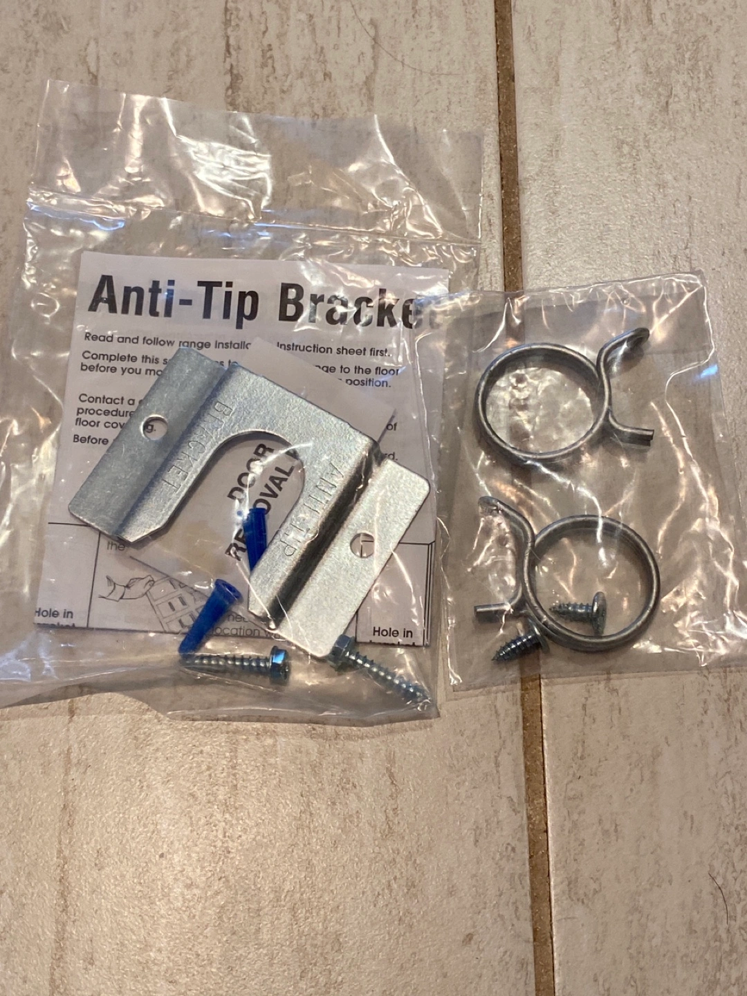 Two anti-tip brackets with screws. Includes instructions.