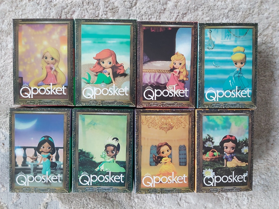 Set of 8 Disney Princess figurines. Includes: Ariel, Belle, Cinderella, Jasmine, Mulan, Rapunzel, Snow White, and Aurora.