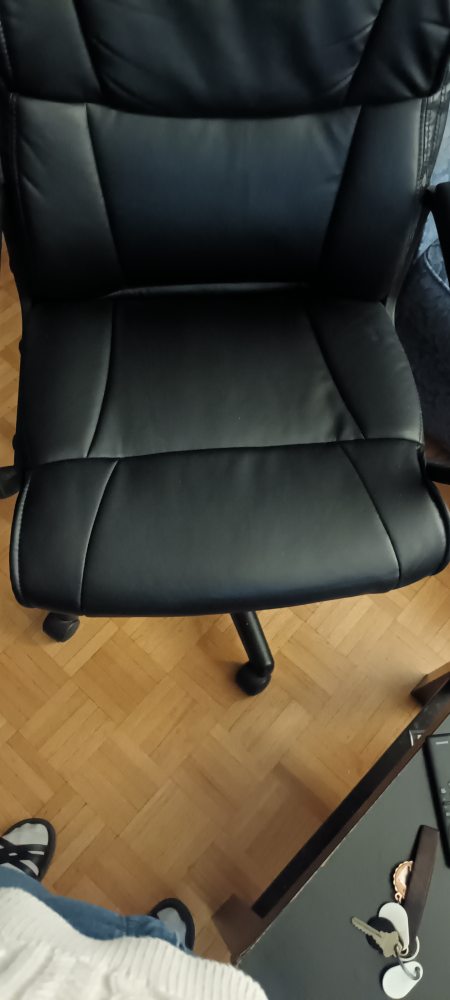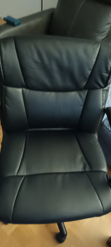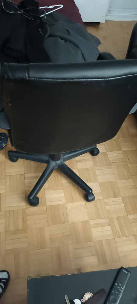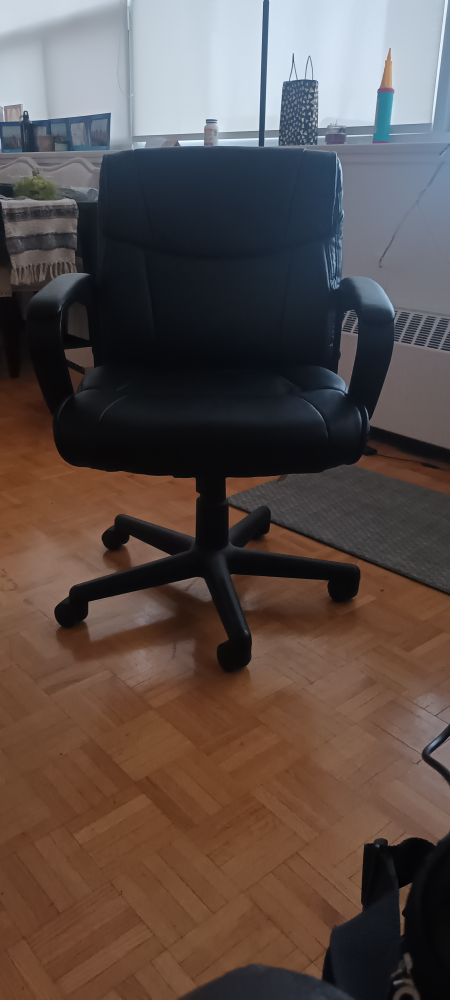 Black office chair with swivel base and wheels. Great condition. extremely comfortable