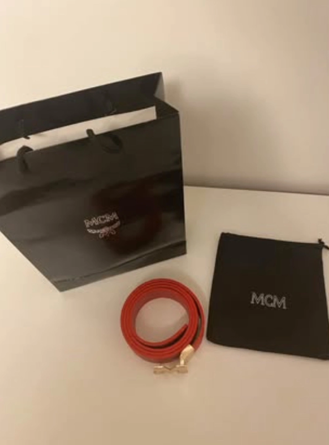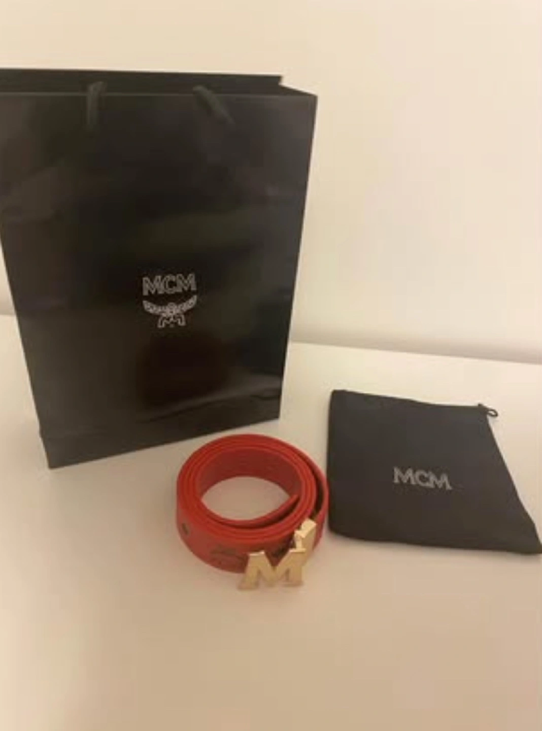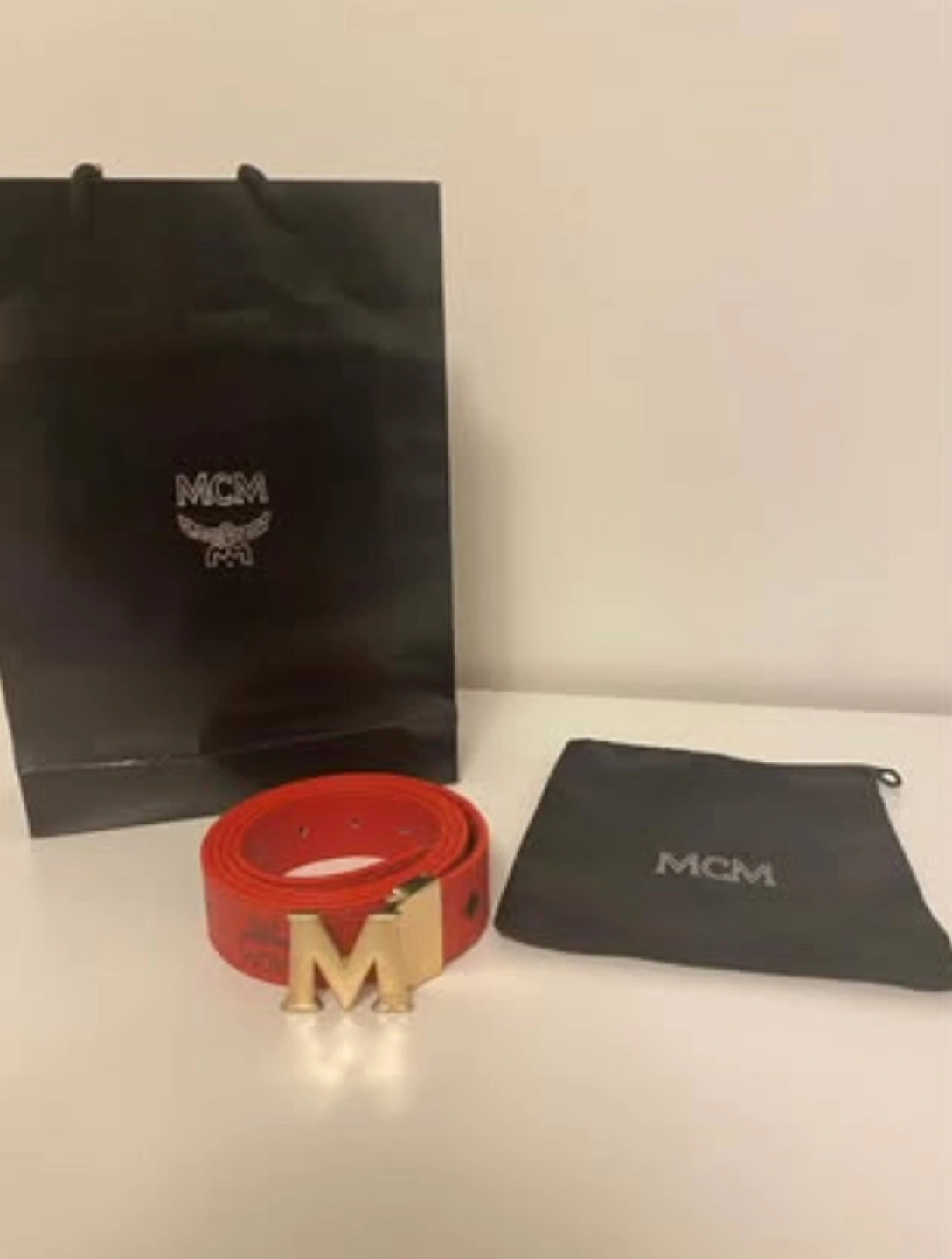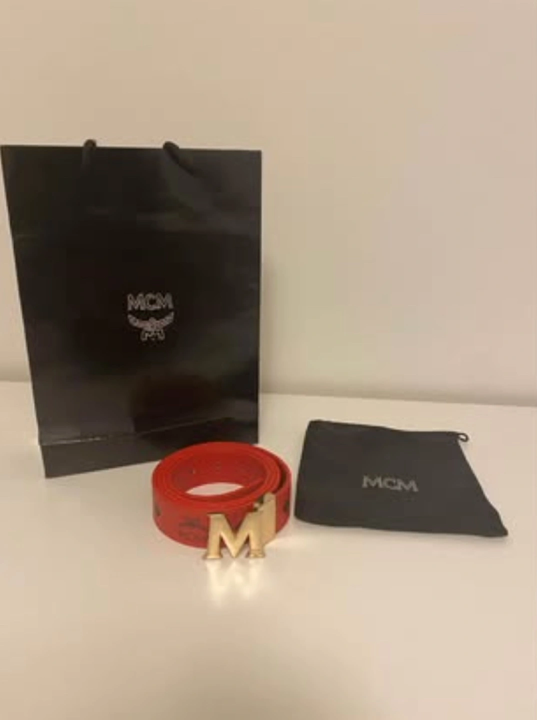 Red leather belt with gold buckle. Comes with original MCM dust bag and shopping bag.