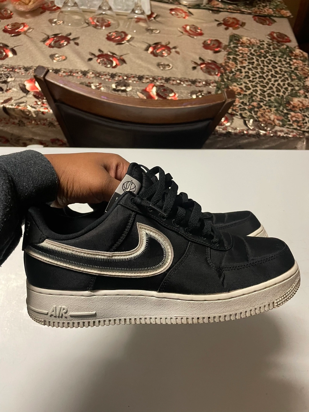 Black and white Air Force 1 Low with a white Swoosh, white sole and black laces; selling because I don’t wear them. Pick up only.