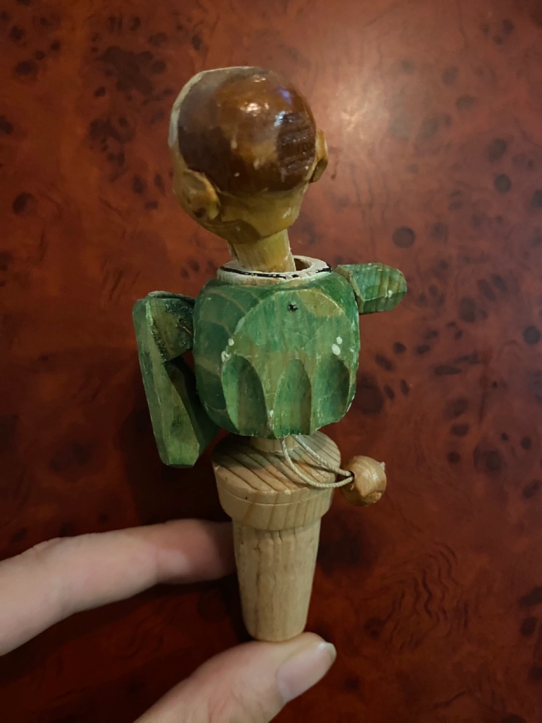 ANRI Mechanical Hand Carved Bottle Stopper Italy Vintage