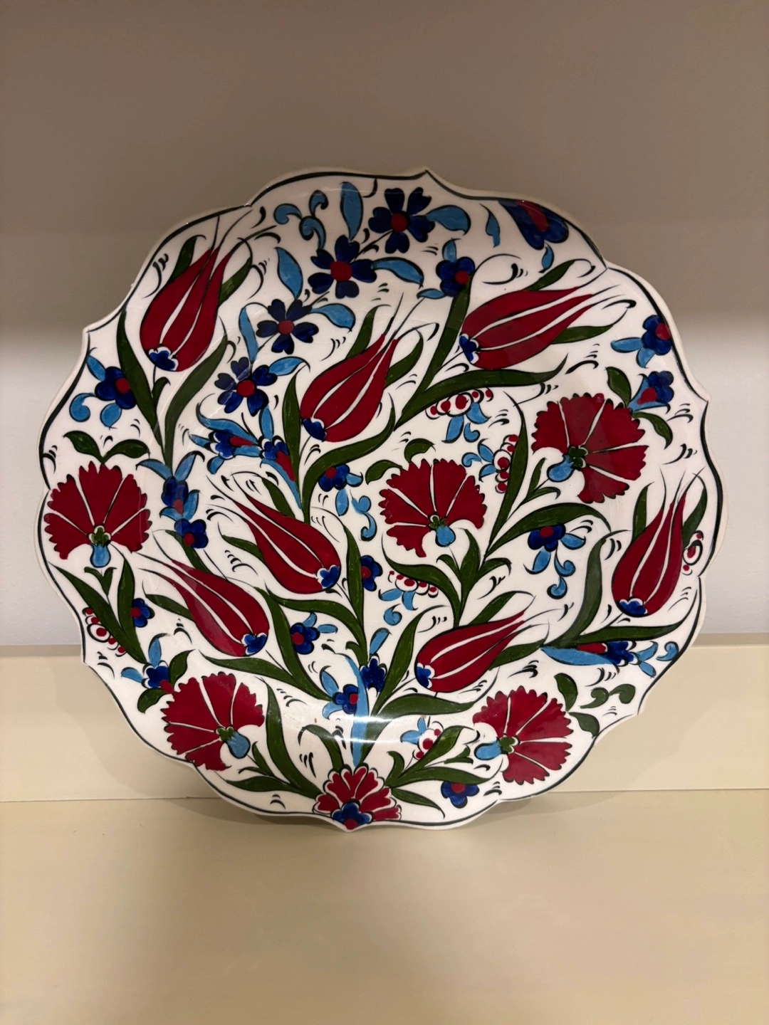 Hand painted ceramic decorative plate with a floral design. The plate is in great condition.