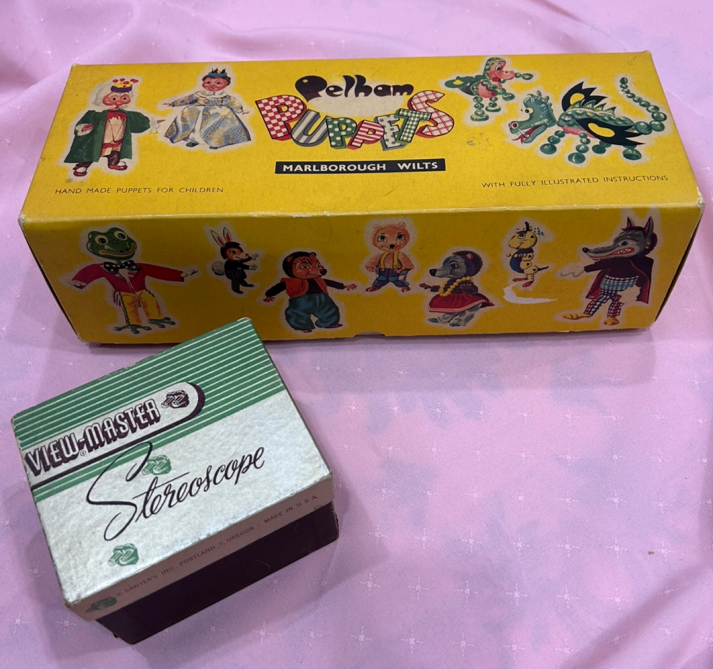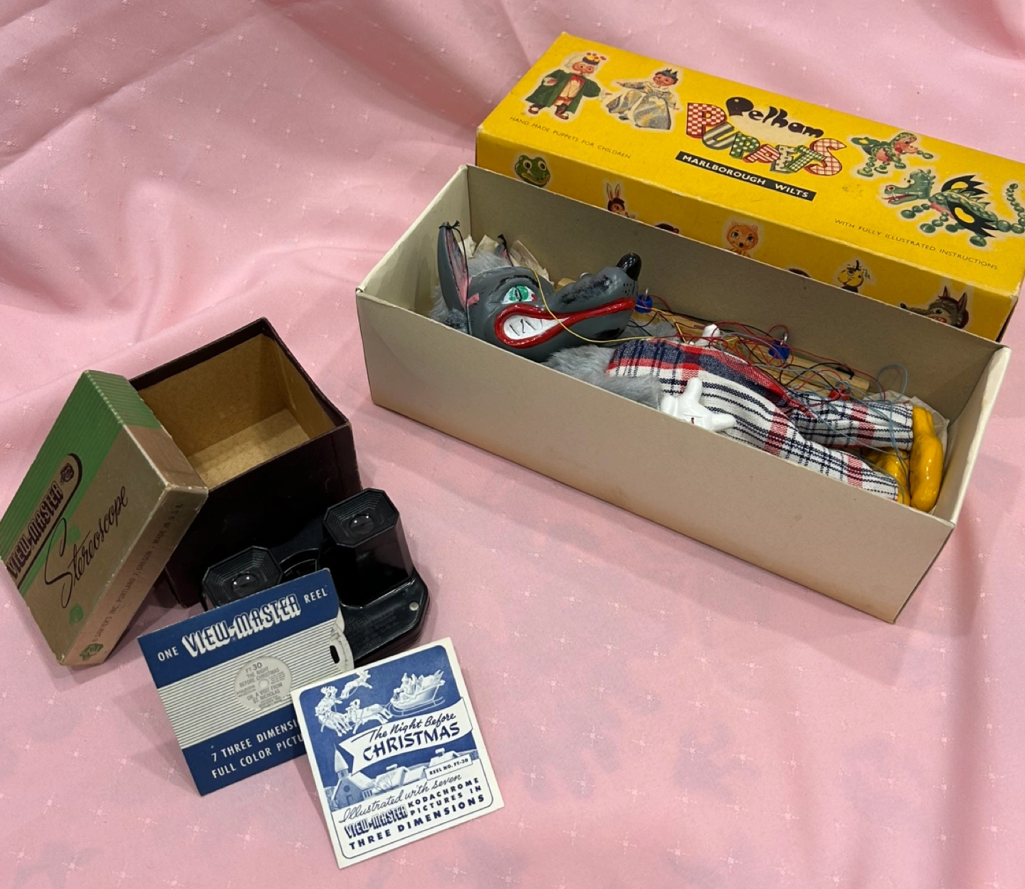 Merry Christmas-Vintage 1963 Pelham Big Bad Wolf Puppet and Includes a vintage View-Master and reel. T’was the Night Before Christmas. Both in original boxes 1963. Fabulous collectables!!