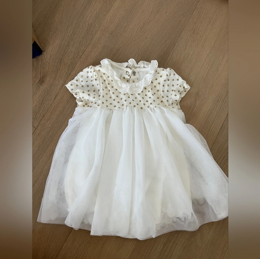 Petit Bateau Baby Girls' Cotton and Linen Bodysuit/Dress 3-6M