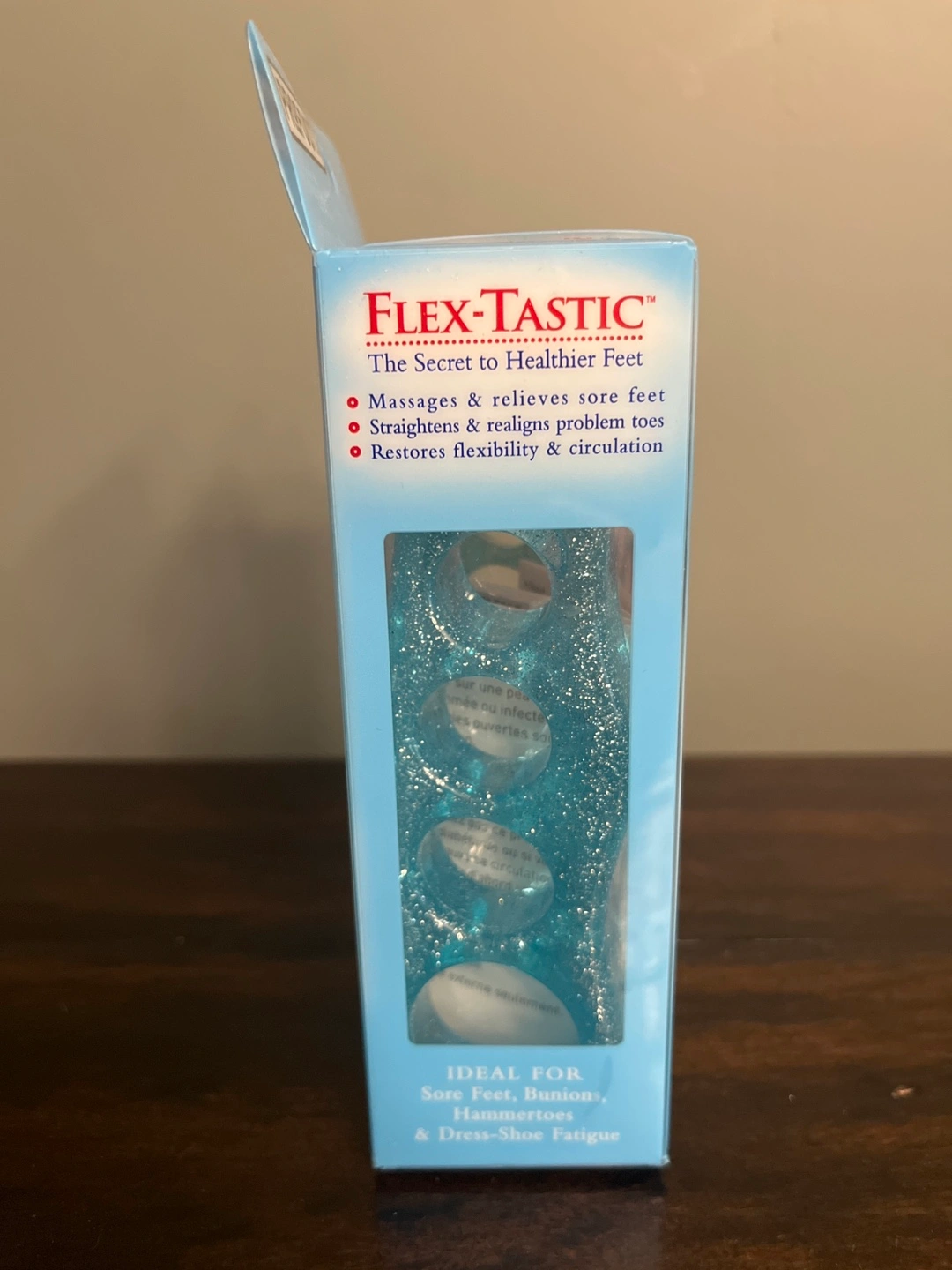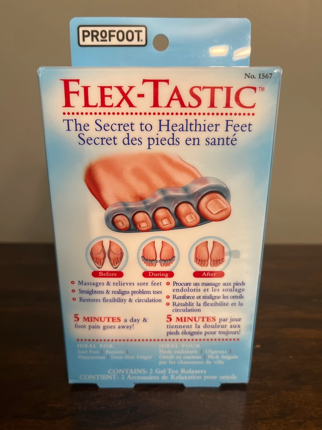 Toe stretchers, massages and relieves sore feet, straightens and realigns problem toes, restores flexibility and circulation. Ideal for sore feet, bunions, hammertoes and dress shoe fatigue. Contains 2 gel toe relaxers for arches.