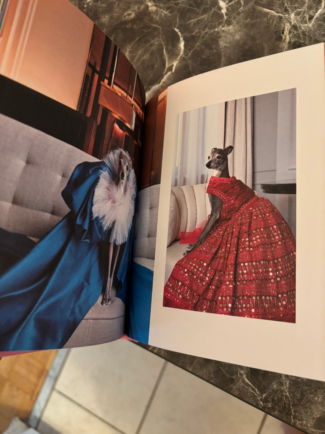 Hardcover book featuring a dog named Tika. The book explores the dog's life, love, and fashion.