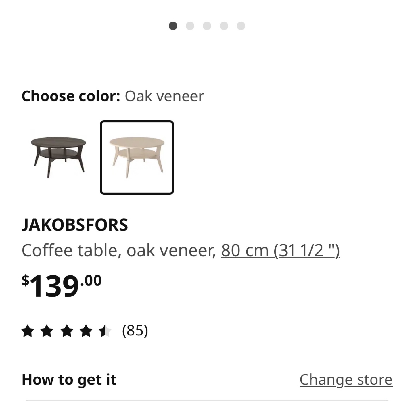 1 / 51 / 5Buy & SellIKEA JAKOBSFORS Coffee TableIKEA JAKOBSFORS Coffee Table$80Round coffee table with a lower shelf, oak veneer. Good condition.ConditionLike newWHERE TO MEETYonge-EglintonView MapSELLERAliceYonge Eglinton9710 reviews1 chats·1 favorites·38 viewsSEND CHAT TO SELLERHi Alice! I’m interested in your listing.Hi Alice! I’m interested in your listing.Get the Karrot app to chatSign In to chat
