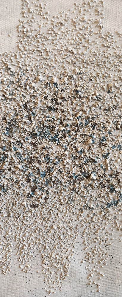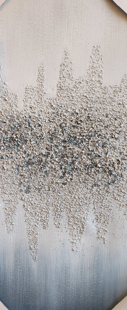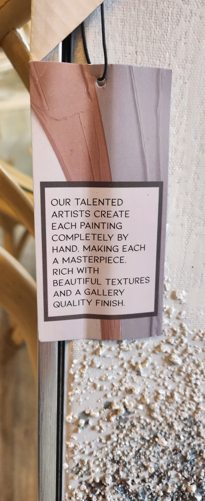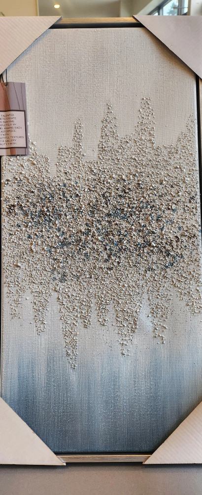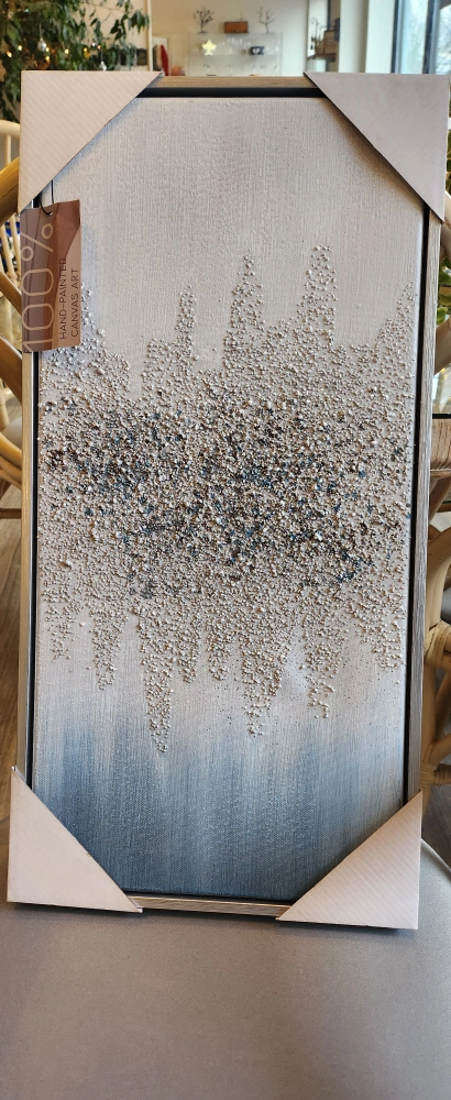 100% hand-painted canvas art. Features a textured, abstract design in shades of blue, white and brown.Size 25"×12" . 61cm x30cm.