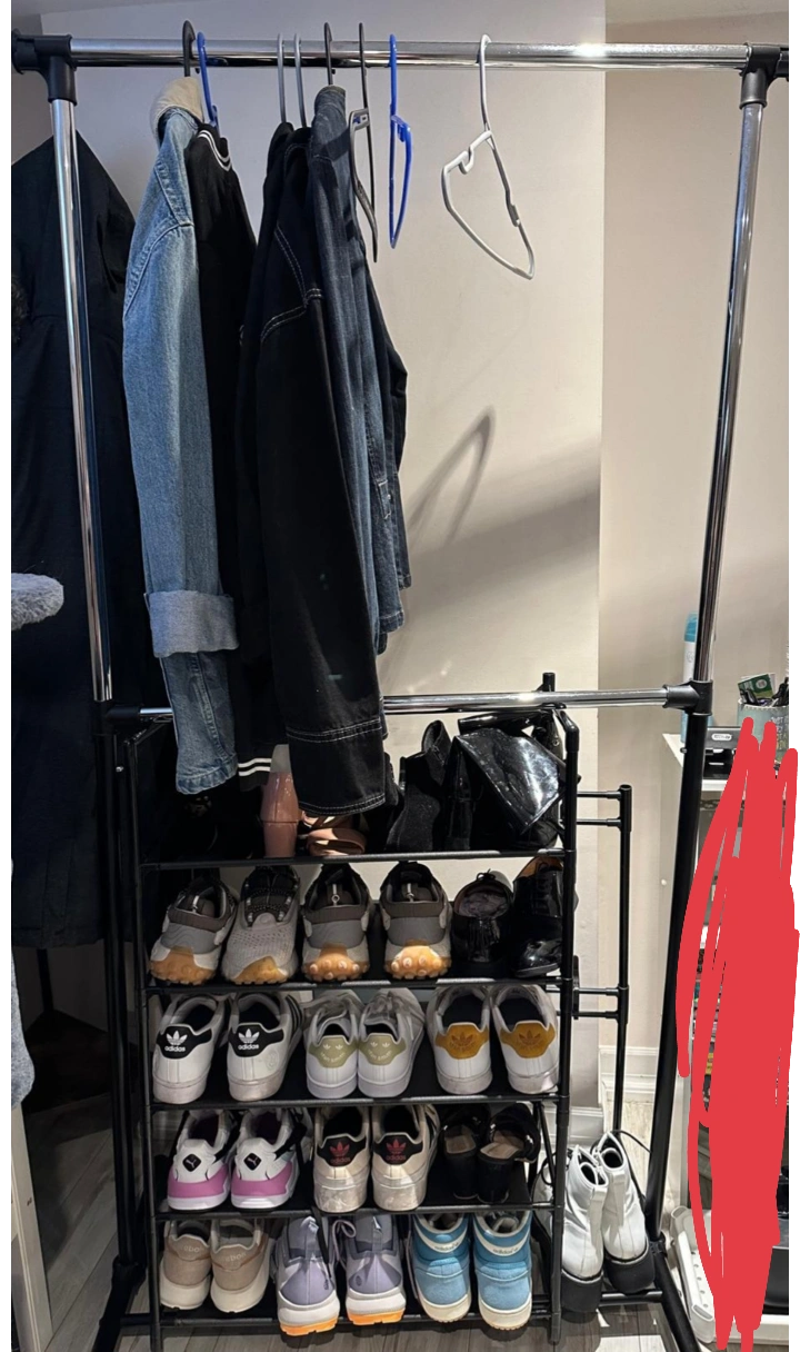 Offering a coat stand and a shoe stand for free! Perfect for organizing your space. Please note that the items shown on the stands (coats, shoes, bags, etc.) are not included—it's just the stands themselves.