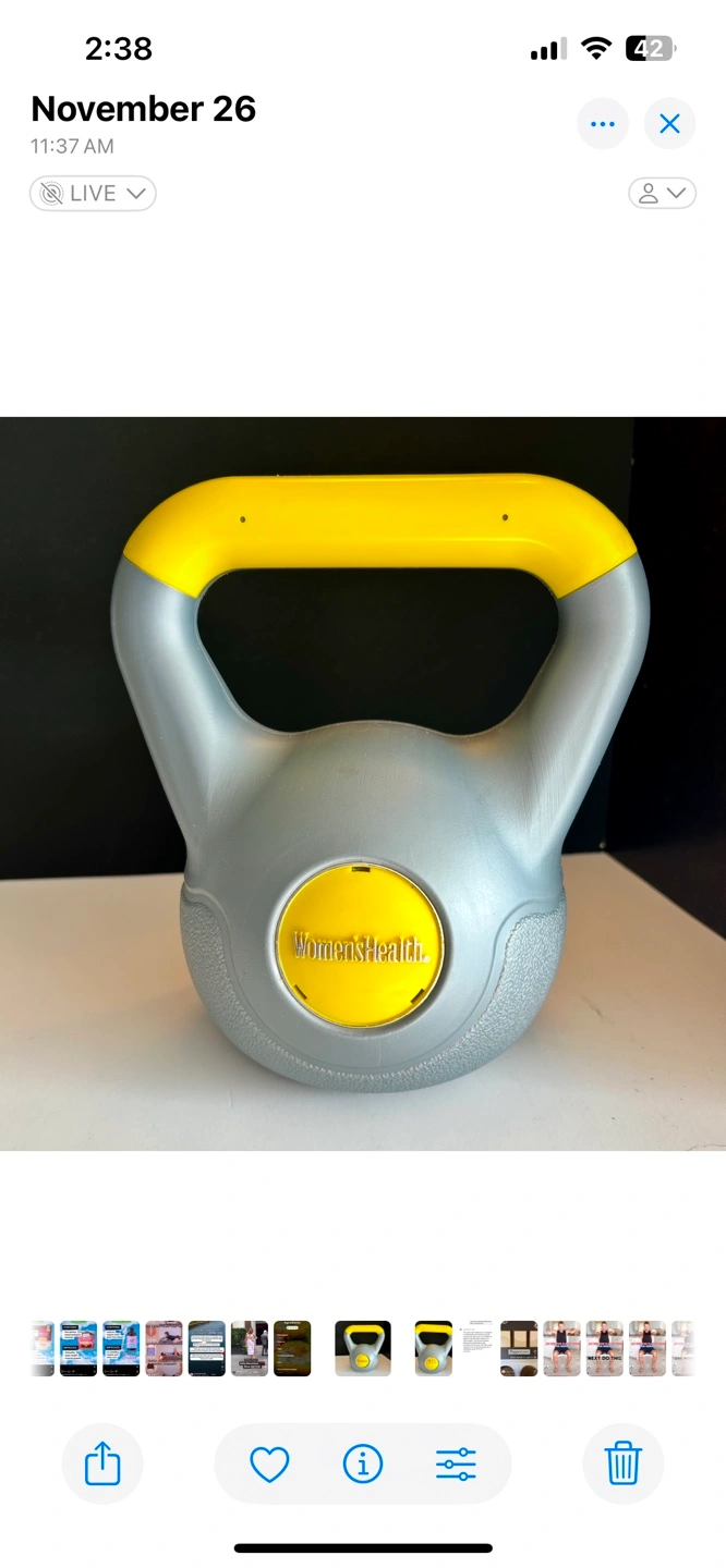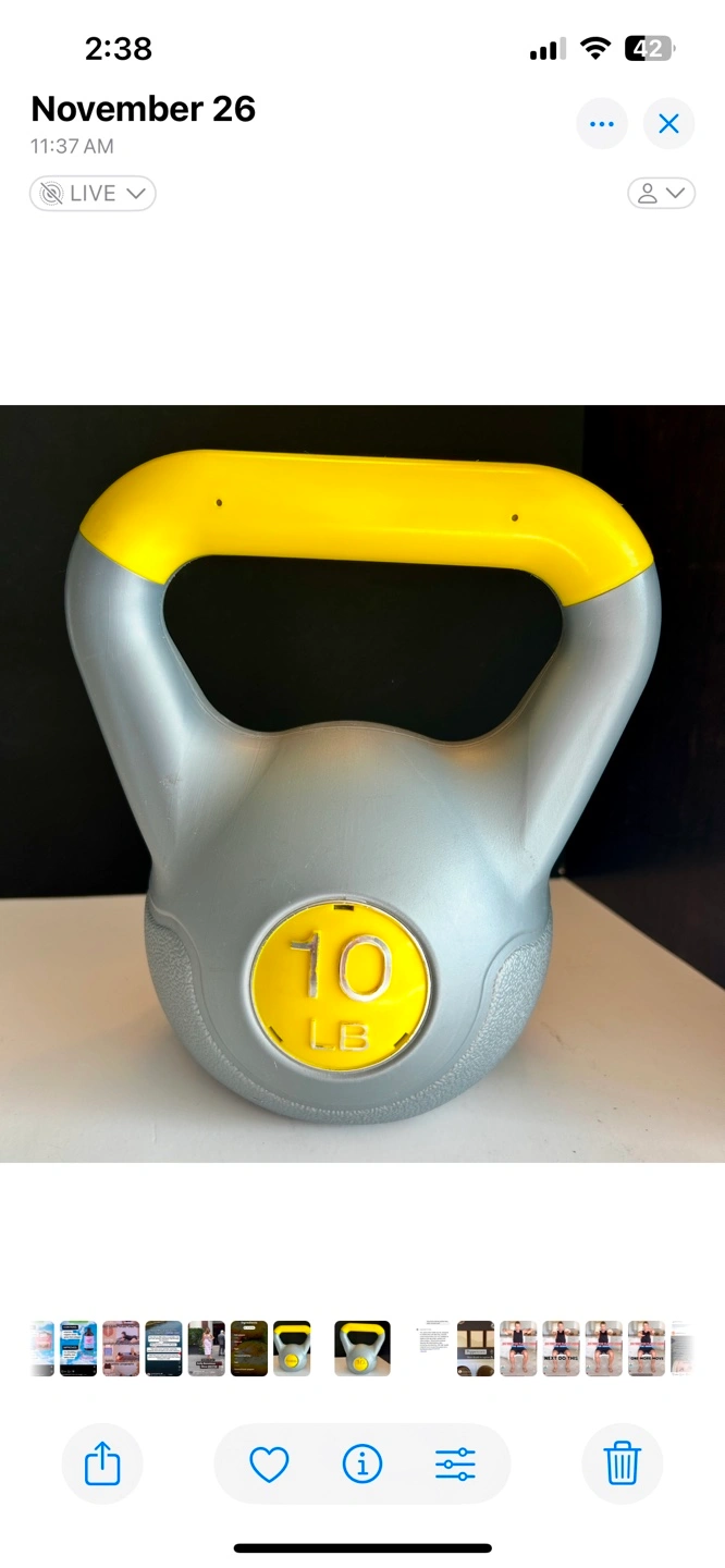 10 lb kettlebell, grey and yellow. Good condition.