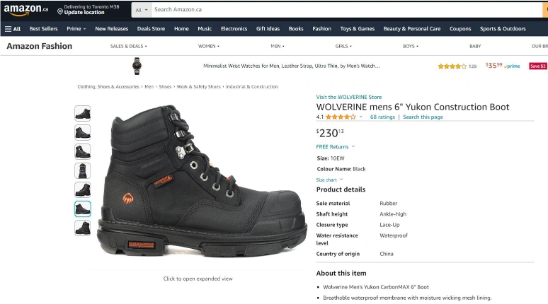 WOLVERINE Men’s Yukon CSA CarbonMax 6" Black Safety Toe Construction Boot. Size: 10 Extra Wide.