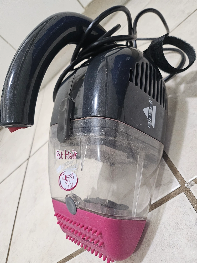 Corded handheld vacuum designed for pet hair pick-up. Includes hair attachment pictured, as well as the standard vaccuming attachment. Used but in great condition!