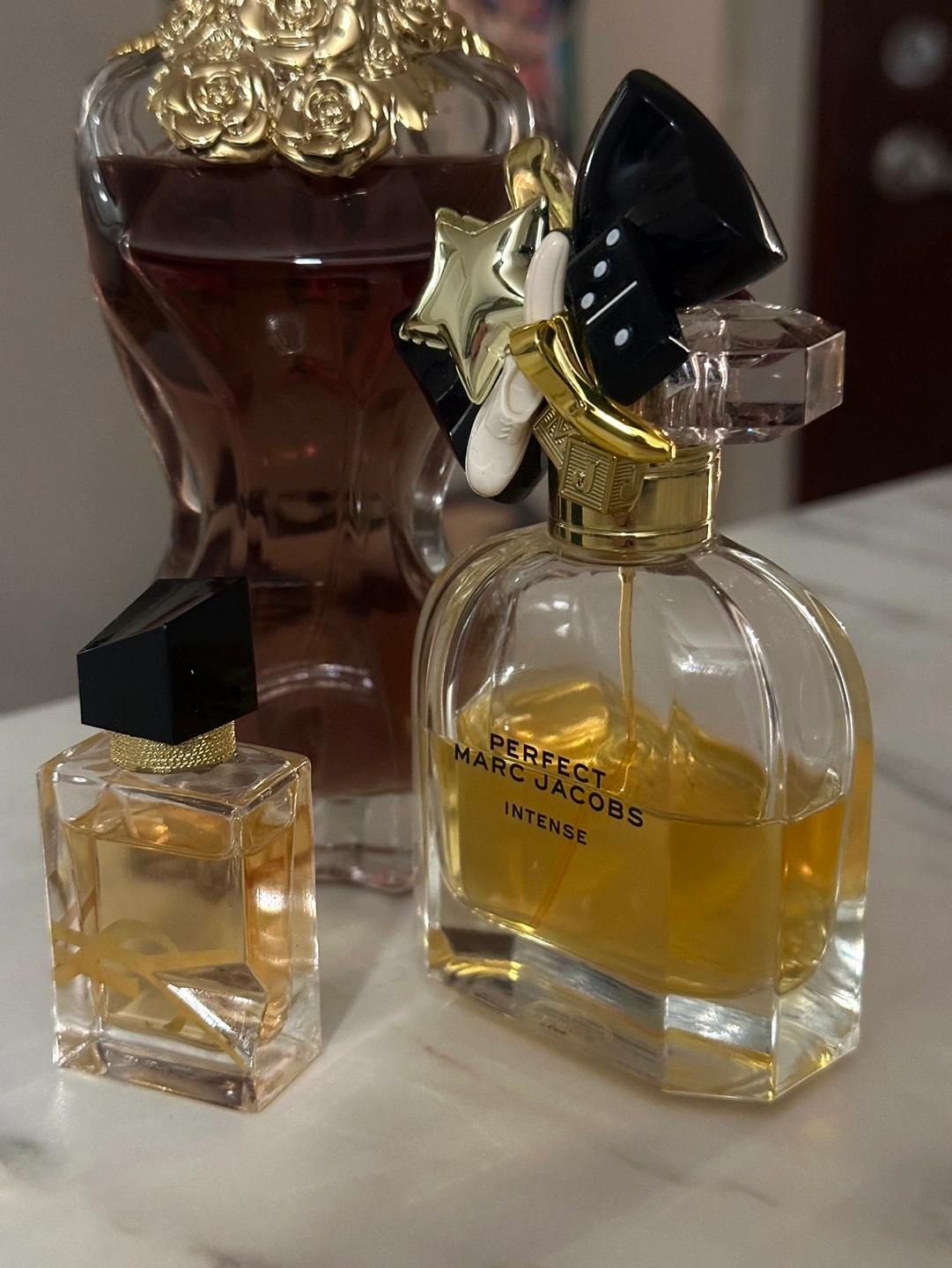 THREE bottles of perfume set Jean Paul Gaultier La Belle Eau De Parfum Lovely intriguing fragrance… it’s described as a “sensuous sweet scent.” This one I personally like the most out of the three. PERFECT MARC JACOBS INTENSE • Floral scent, • Can be layered Used on its own for as a warm rich fragrance full of texture! The other little guy is Libre Eau De Parfum sampler, it’s in a glass bottle. Warm floral/ bold scent. [Come as seen in the photos! No changes.] Individually: Jean Paul $55 Marc Jacobs $50 Libre Eau $10 (OPTIONAL) ALL TOGETHER $110 I hope someone finds and adores these special fragrances :) hardly used due to fragrance sensitivity.