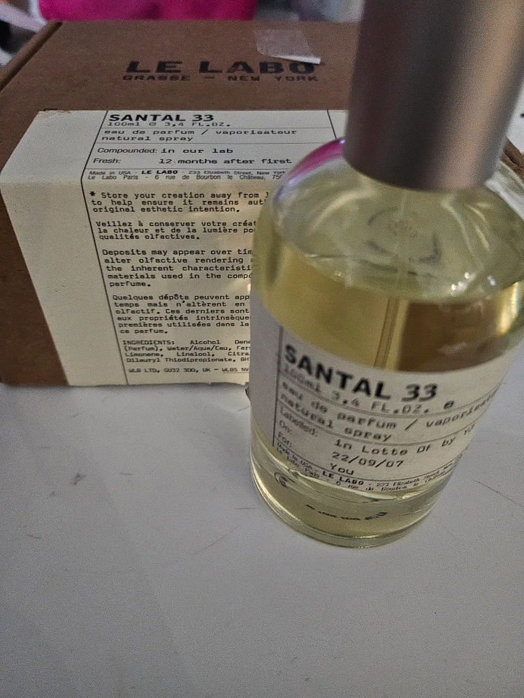 Buy & SellLe Labo Santal 33 Eau de ParfumLe Labo Santal 33 Eau de Parfum$199100 ml bottle of Santal 33 natural spray eau de parfum. BrandLe LaboWHERE TO MEETCamellia The GardensView MapSELLERJodyCity Centre14813 reviews1 chats·1 favorites·43 views