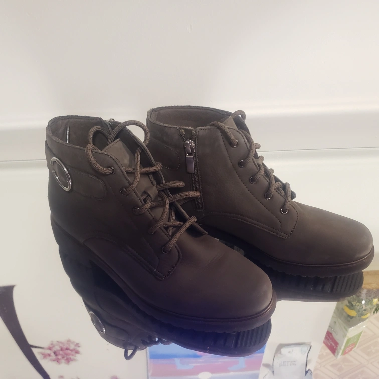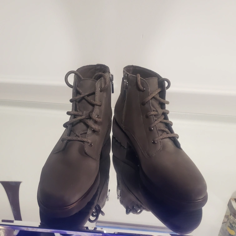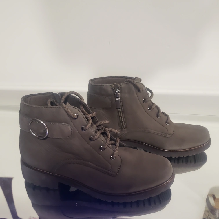 Brand new Women's Lace-up ankle boots with side zipper and a buckle on the side. Size 7.5M. For sale only $69