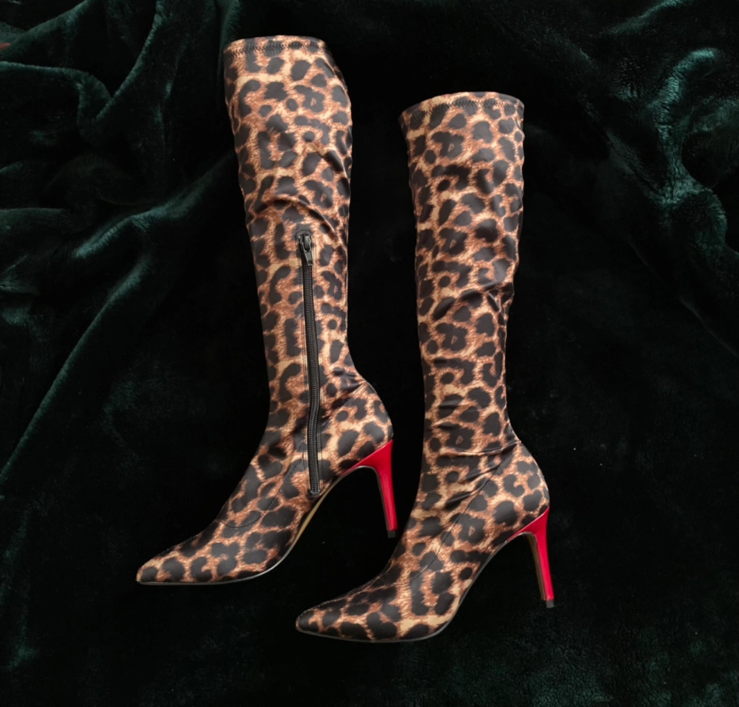 Fall/winter 2025/26 must have…leopard print. Red stiletto heels. Back zipper. Worn once inside. Like new! They’re fun and a great statement piece. Can fit size 6-6.5