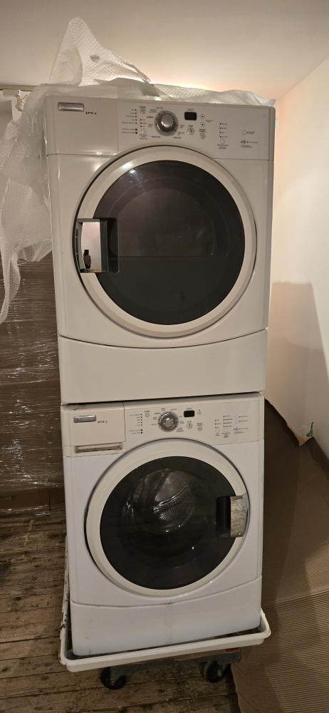 The washer however, is free because it has some occasional glitches with it's 'brain'. It completes it's cycle fine most of the time, but occasionally it glitches and stops during the rinse cycle. A quick off/on and restart sequence with just the rinse/spin cycle finishes the job when it does happen. A bit annoying at times and I'm certain it needs a new main board to eliminate the glitch, so I'm including the washer free with the dryer if you want it. When it doesn't glitch, it works perfectly fine.