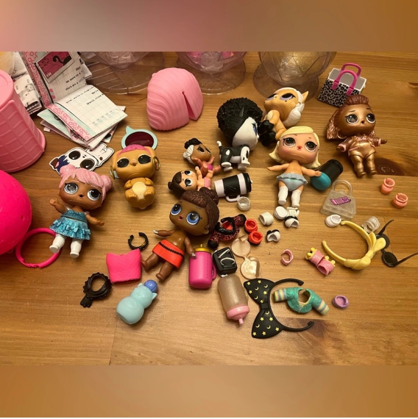 Large bundle of LOL Surprise dolls, accessories, and surprise balls. Includes 3 large surprise balls, numerous dolls, and a large variety of accessories.