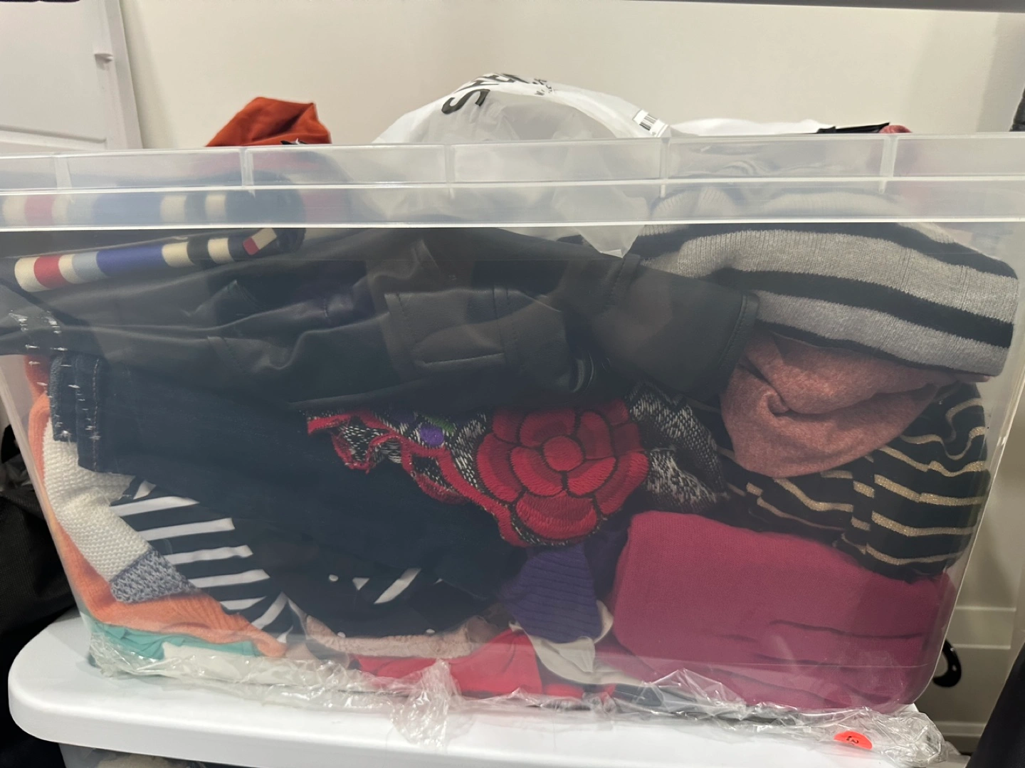 Box with good items, everything needs to go. Box contains brands from Express to kate spade and lululemon items. orange leggings, size 10. Most is size 8 and 10 and Medium size. Womens clothing perfect either for keeping or reselling. If you want something in specific text me. Everything is clothing except for Kate spade bag. Summer and winter variety