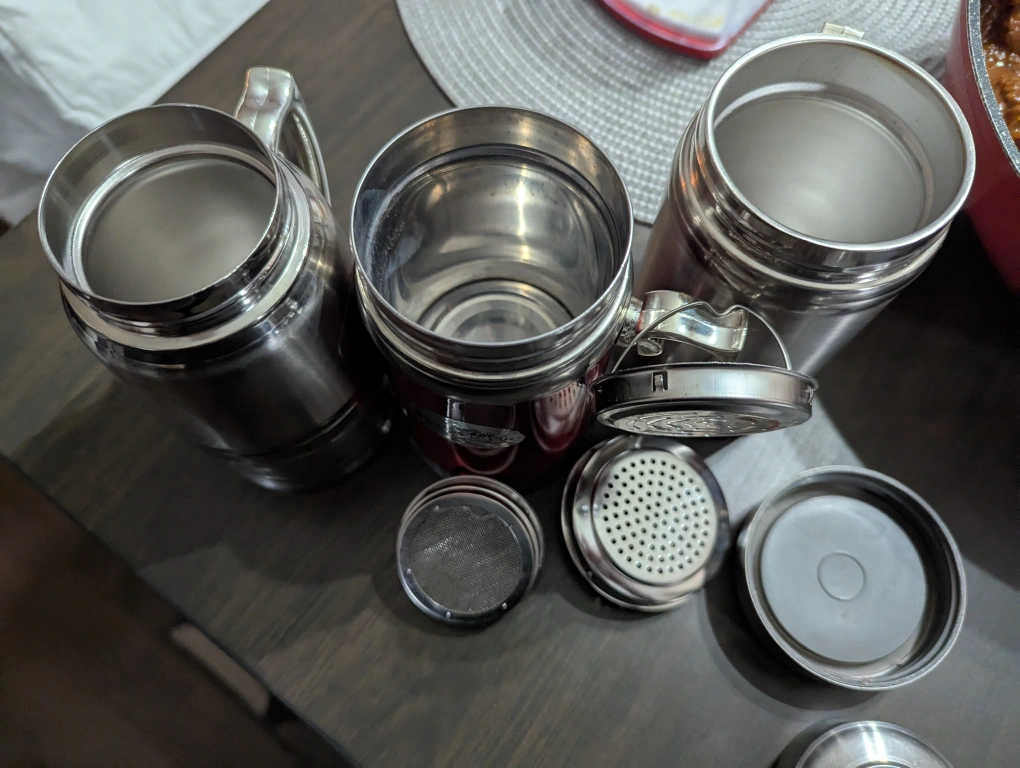 Buy & Sell3x Thermos Travel Mugs3x Thermos Travel Mugs$2Three stainless steel travel mugs. all have a handle. All have lids and a strainer.ConditionNewWHERE TO MEET225 Webb driveView MapSELLERkimCity Center623 reviews0 chats·0 favorites·24 viewsSEND CHAT TO SELLERHi kim! I’m interested in your listing.Hi kim! I’m interested in your listing.Get the Karrot app to chatSign In to chat