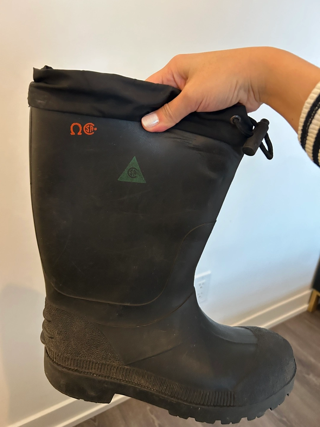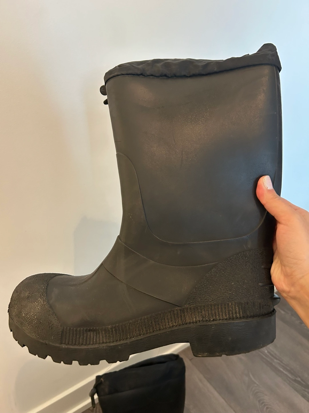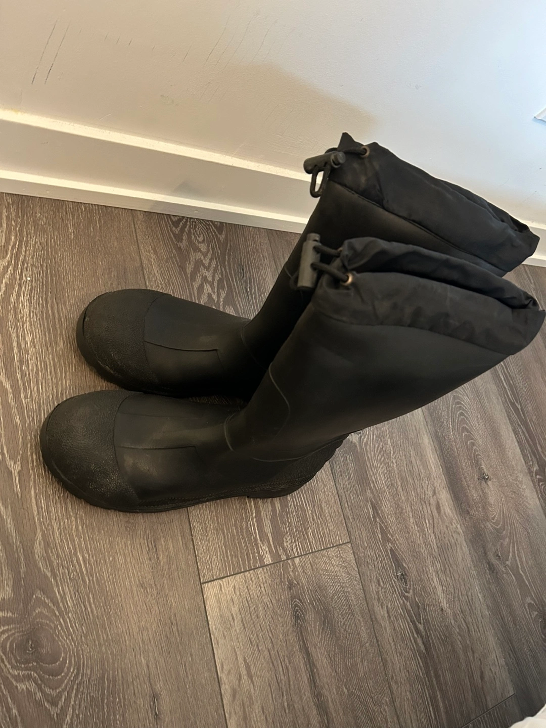 Waterproof and insulate Black winter boots with a drawstring top and a steal toe