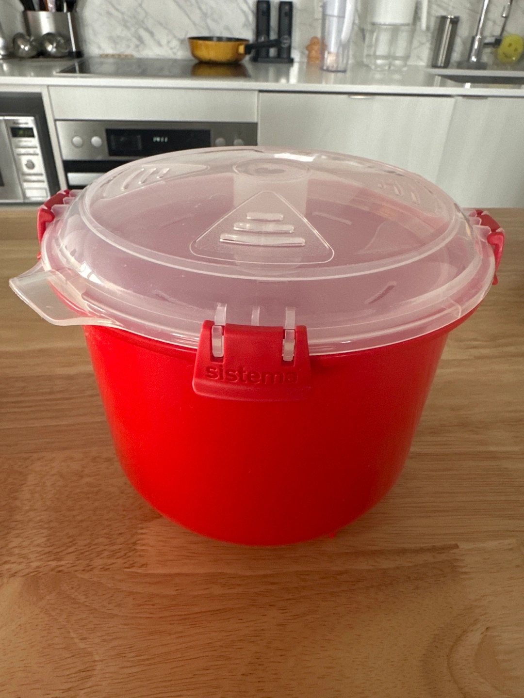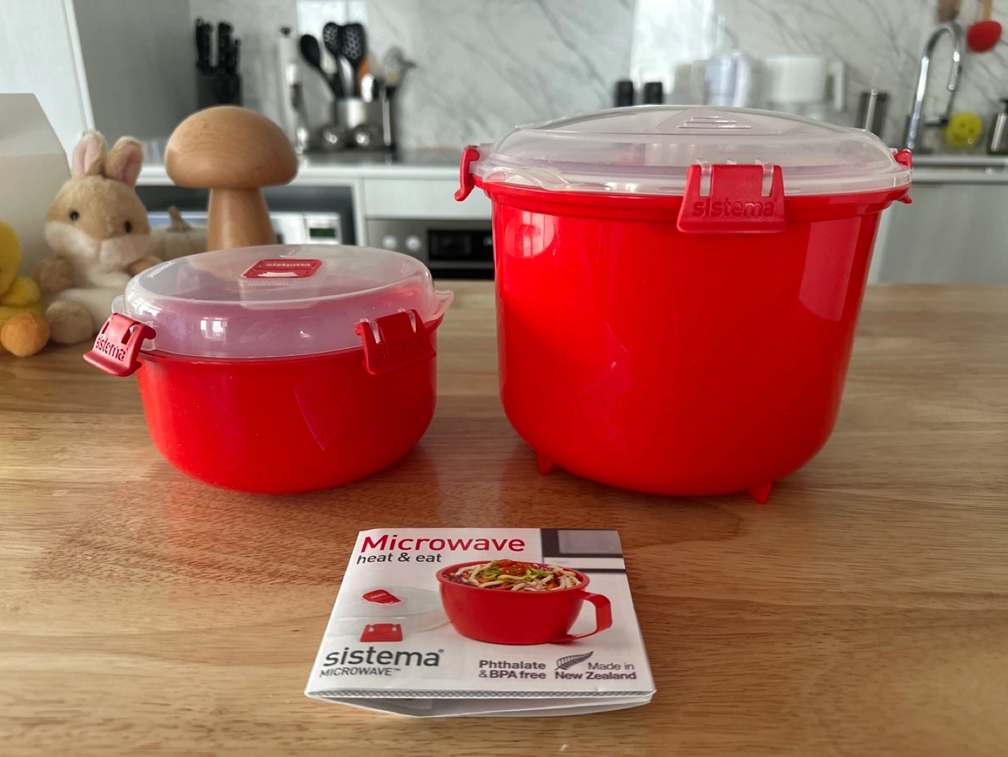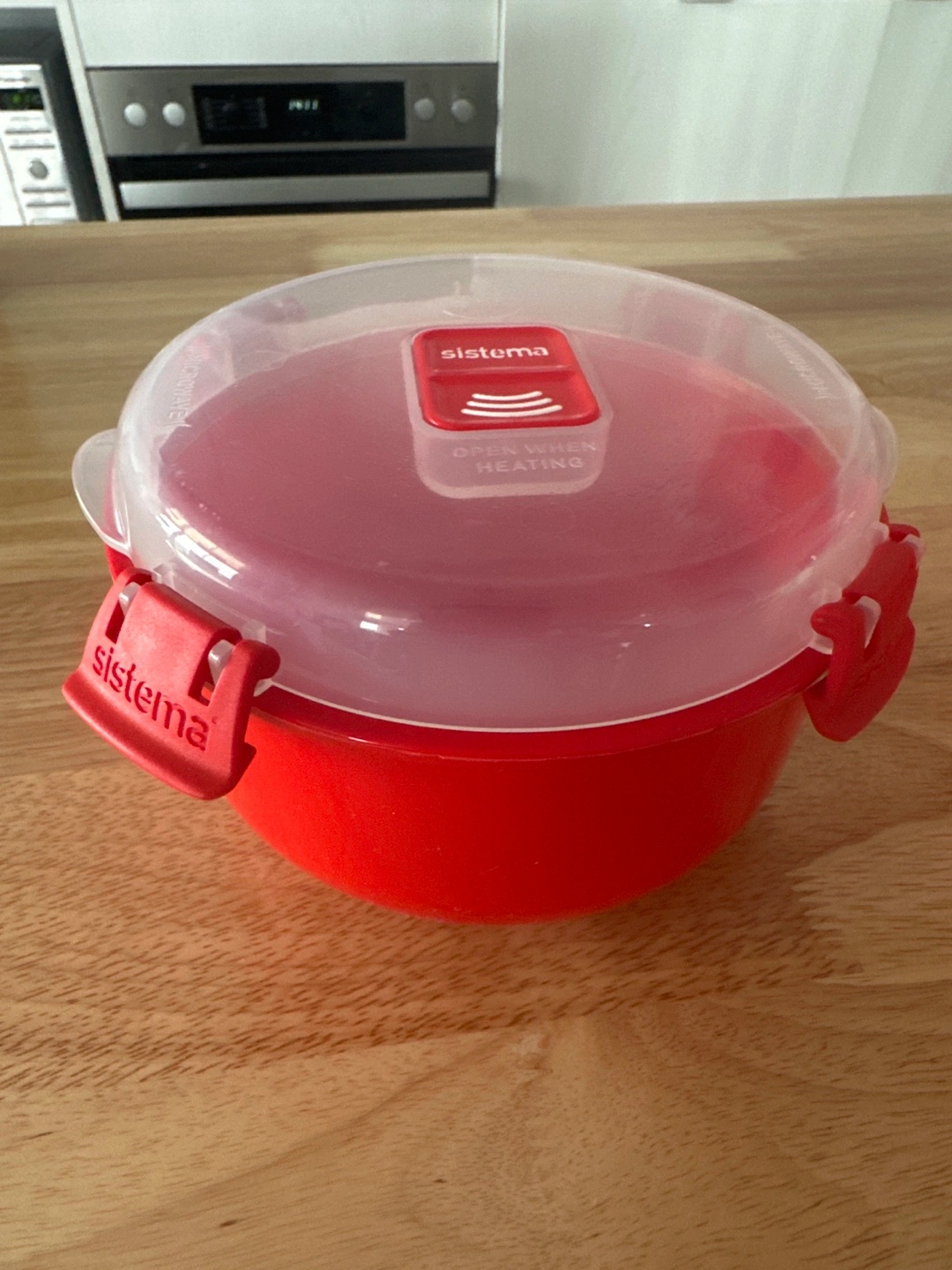 Red Sistema Microwave Heat & Eat containers. Set includes two sizes, perfect for leftovers or cooking pasta/rice.