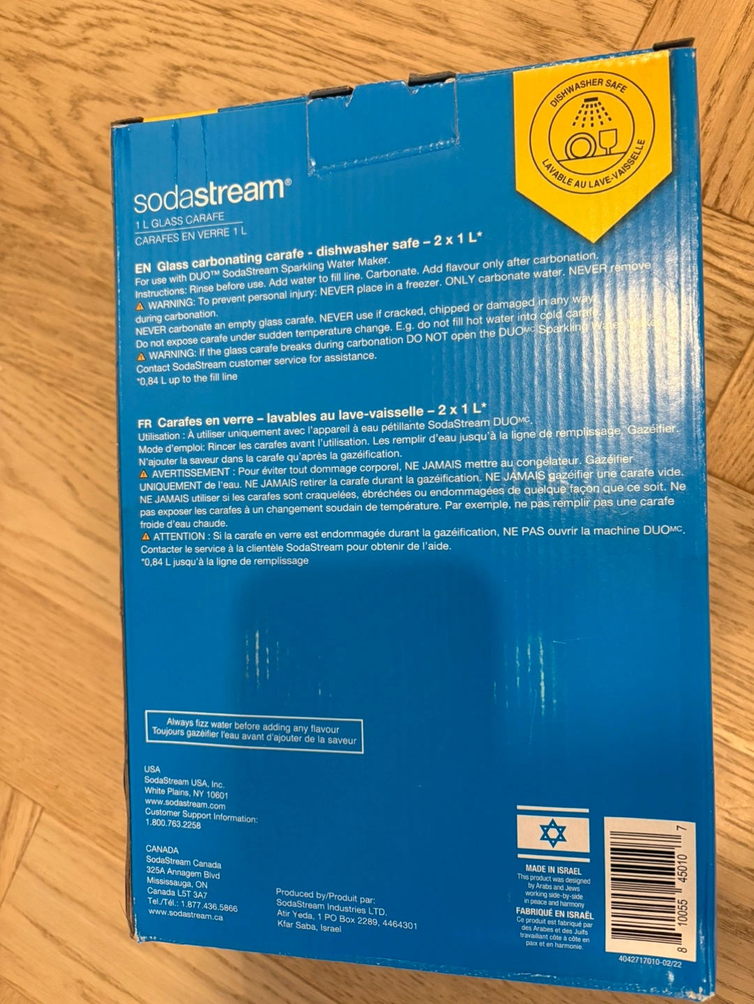 Buy & SellSodaStream 1L Glass Carafe - 2 PackSodaStream 1L Glass Carafe - 2 PackFreeDishwasher safe 1L glass carafes. Compatible with SodaStream Duo machine only.WHERE TO MEETCheck LocationView MapSELLERStuDavisville Village847 reviews5 chats·0 favorites·57 viewsSEND CHAT TO SELLERHi Stu! I’m interested in your listing.Hi Stu! I’m interested in your listing.Get the Karrot app to chatSign In to chat