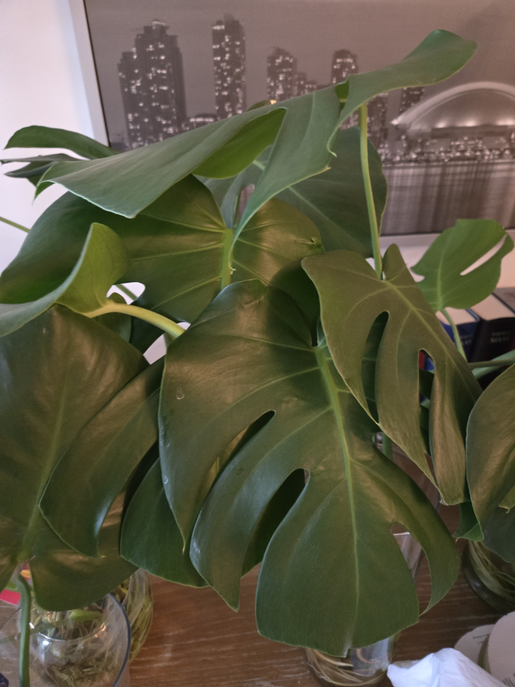 Monstera Deliciosa cutting rooted in water. Healthy and ready to be potted. $4 per cutting.
