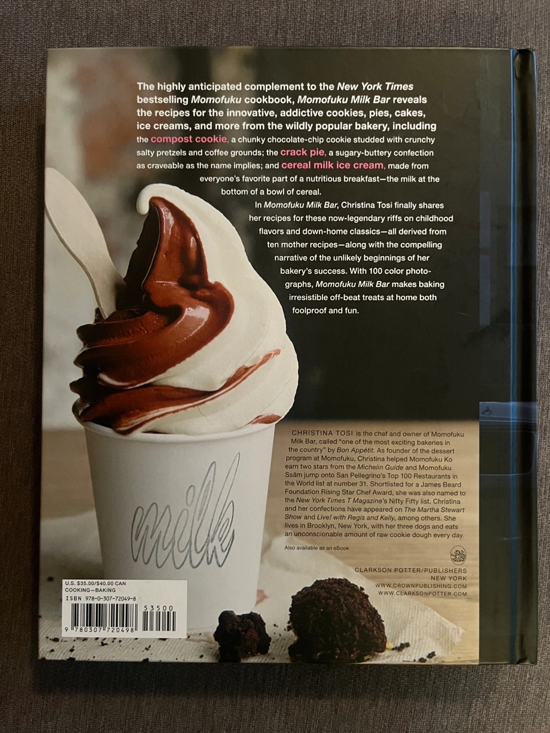 The highly anticipated complement to the New York Times bestselling Momofuku cookbook, Momofuku Milk Bar reveals the recipes for the innovative, addictive cookies, pies, cakes, ice creams, and more from the wildly popular Milk Bar bakery.
