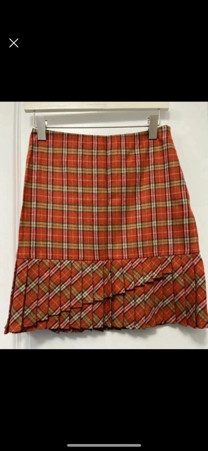 LOFT Women's Orange Plaid Wool Ruffle Hem Skirt - Size 2