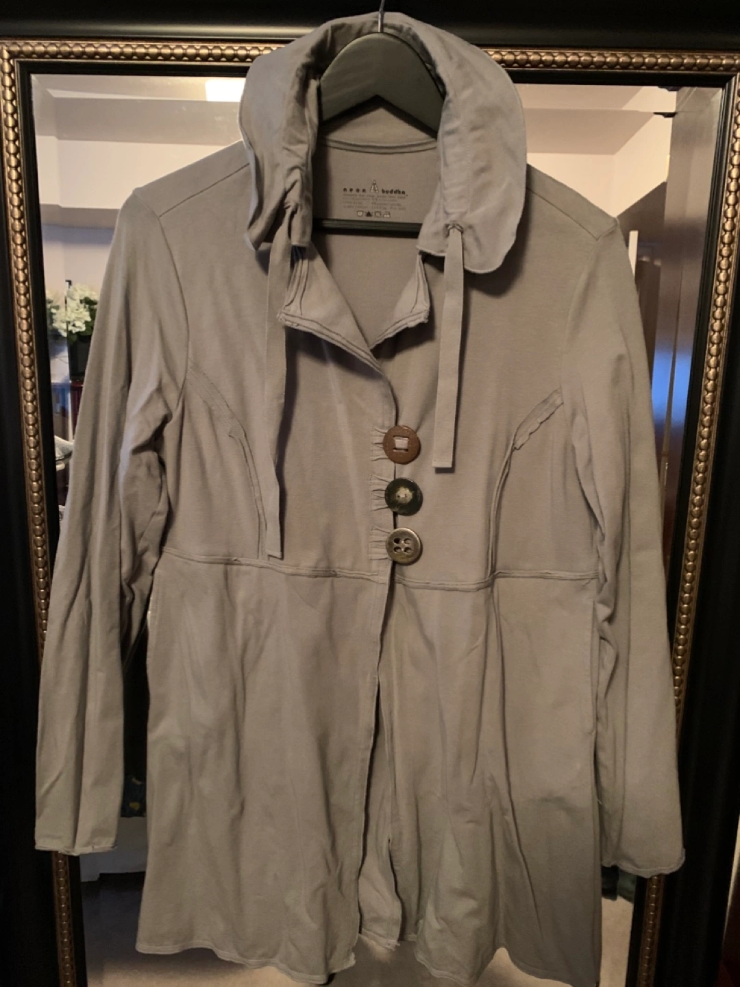 Buy & SellNeon Buddha Grey Button Up JacketNeon Buddha Grey Button Up Jacket$40Long-sleeved grey jacket Features a button closure and unique buttons.ConditionLike newSizeMedium BrandNeon BuddhaWHERE TO MEETCheck LocationView MapSELLERAdrianaBroadmead322 reviews0 chats·0 favorites·2 views