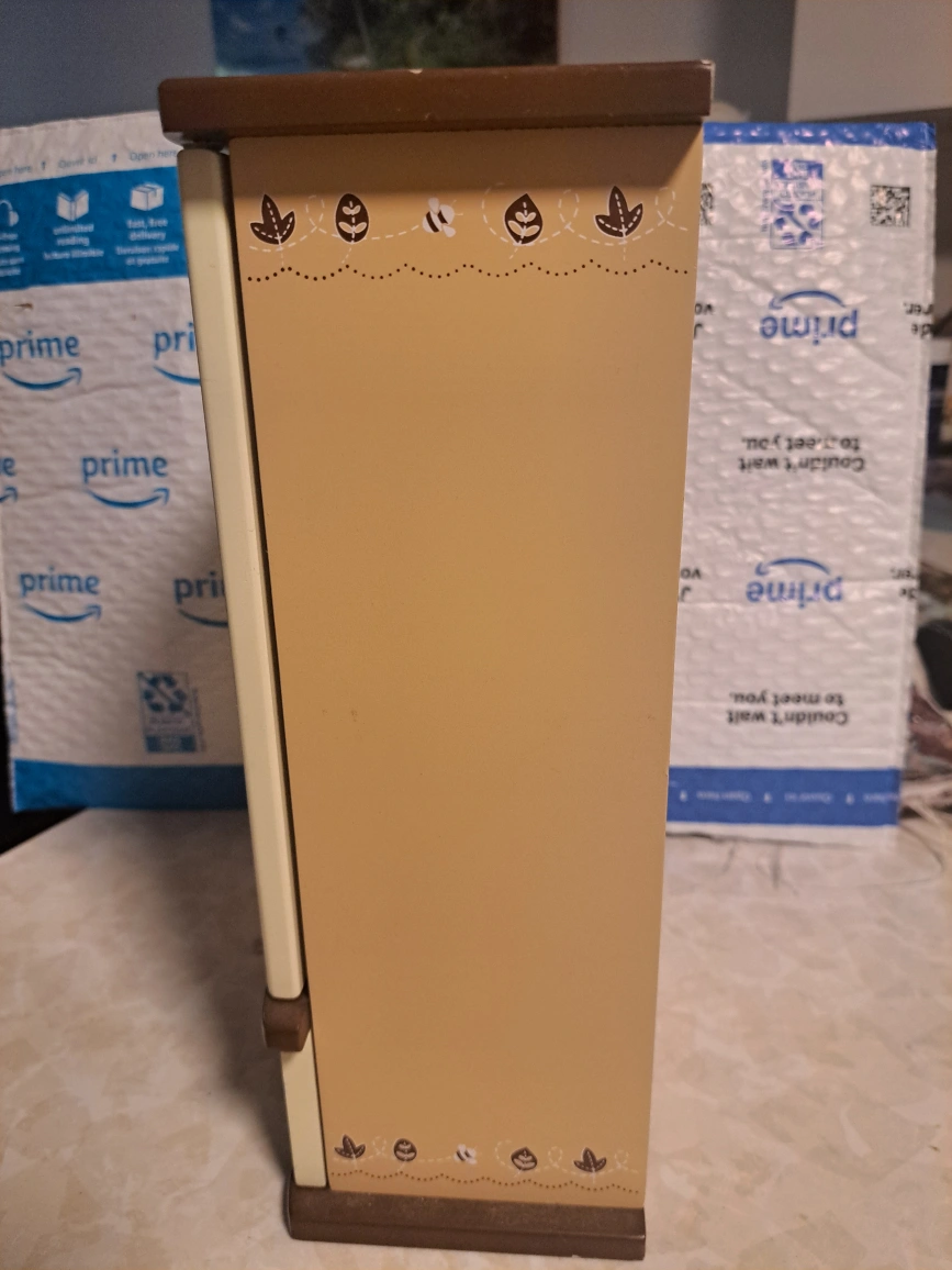Small wooden jewelry box with a drawer and a door that opens to reveal hooks for necklaces and a ring holder. Winnie the Pooh, and friends are featured on the door. Excellent Christmas present