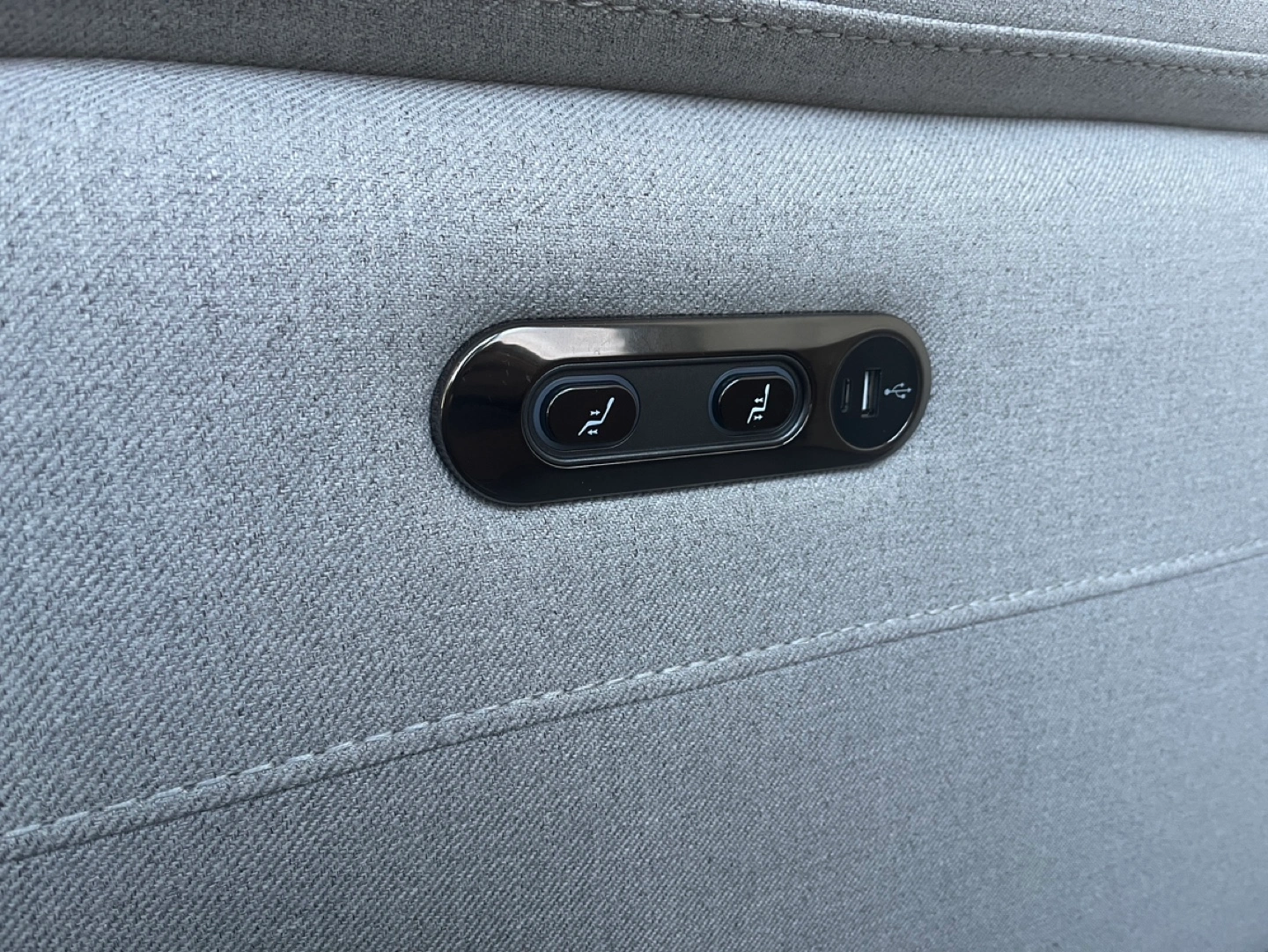 This is an excellent item with great features. In addition to the reclining function, it offers an adjustable headrest for added comfort. It also includes one USB and one Type-C charging port on each side for convenience.