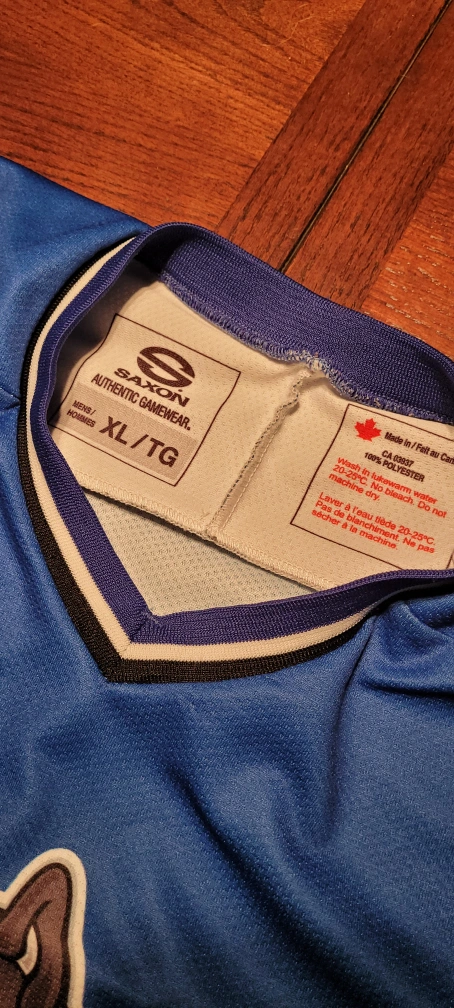 15 XL and goalie 3XL. Tampa Bay colors, minor marks and wear. great condition overall. Replacement or additional available through original point of sale.