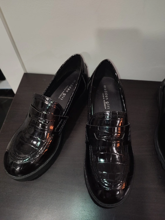 Beautiful glossy black snake/ crock finish loafers from Steve Madden brand too big on me unfortunately.