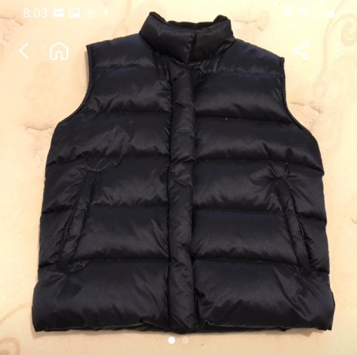 Navy blue puffer down vest.