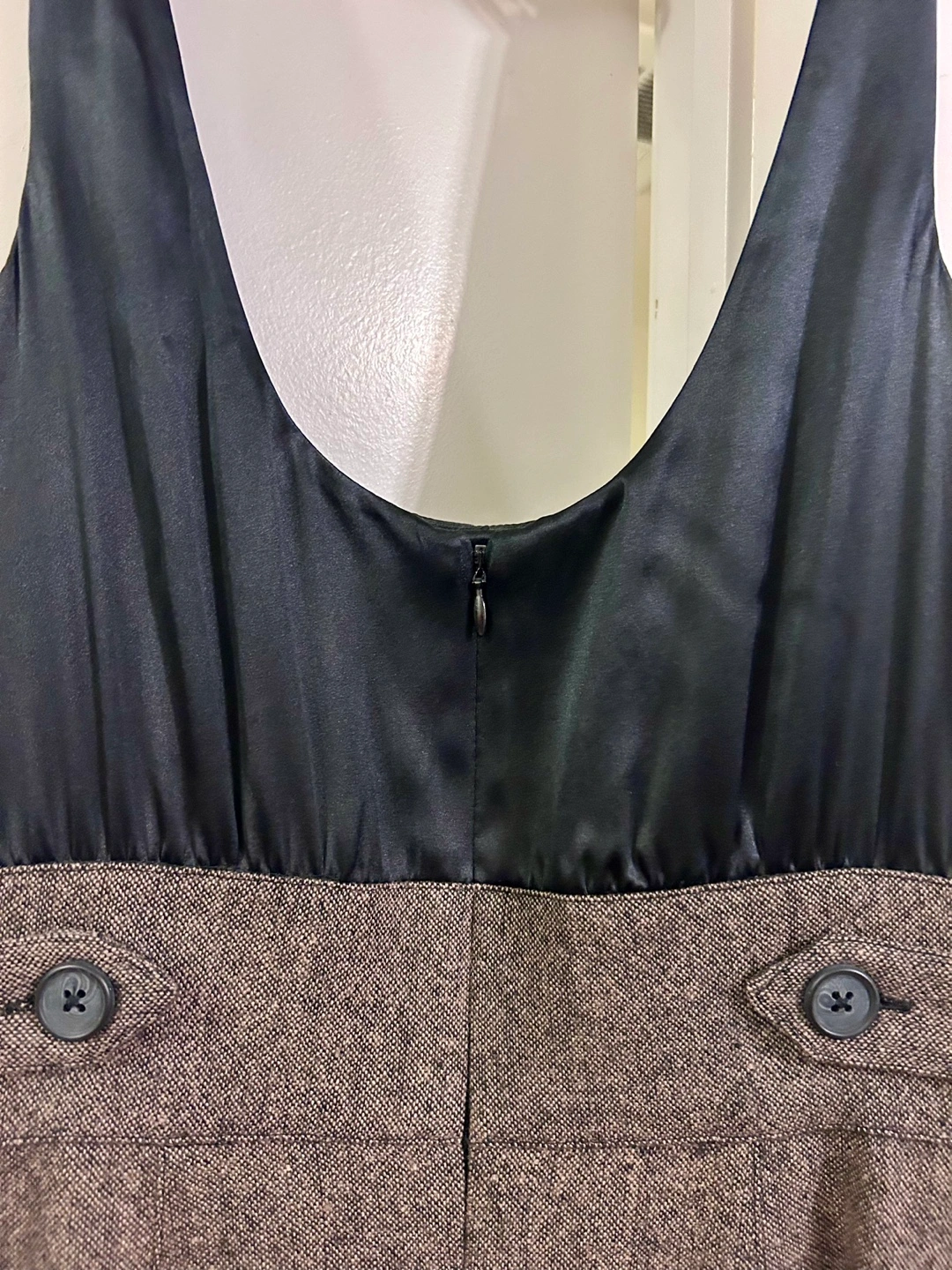 β’ back zipper closure with clasp