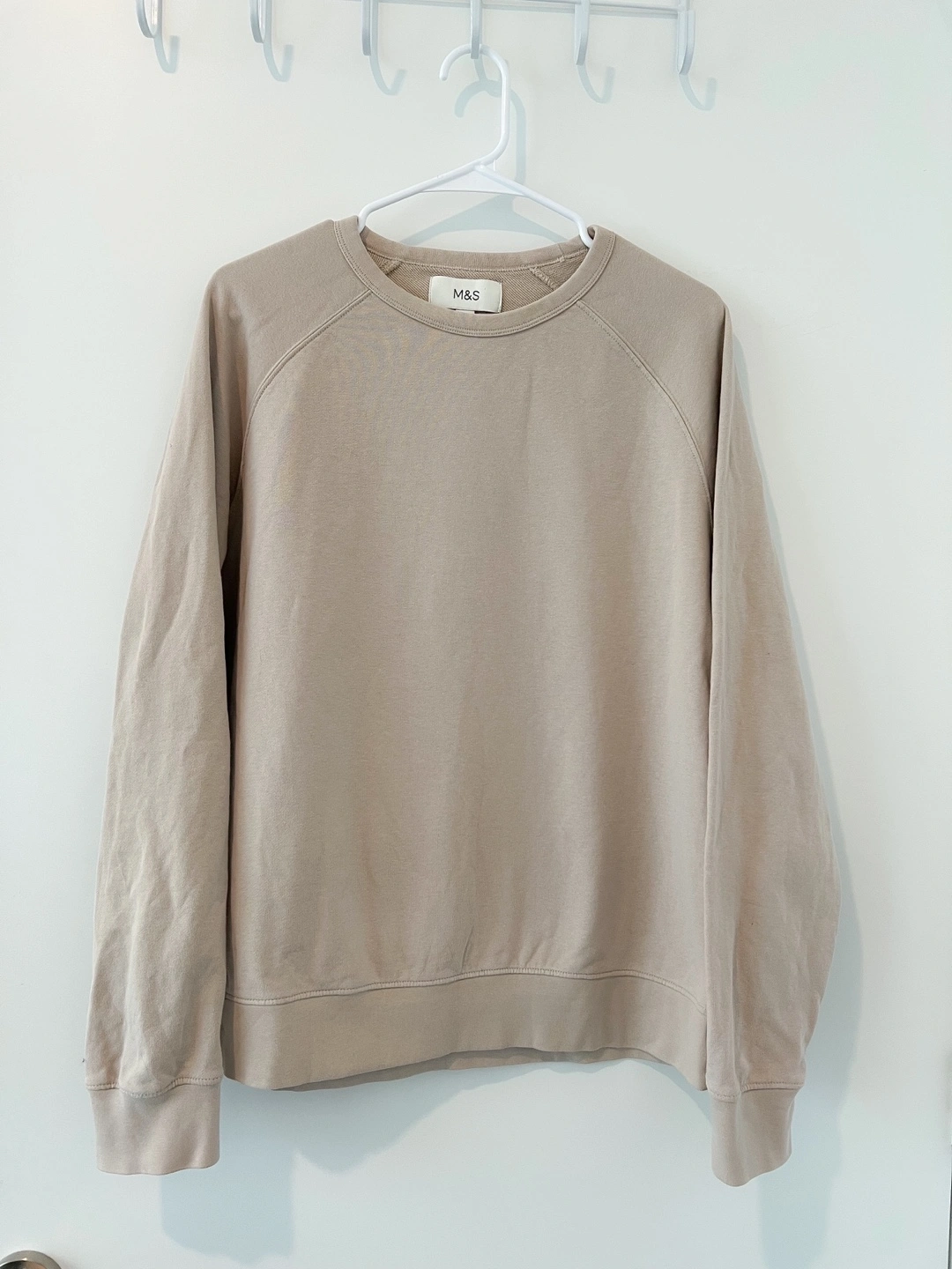 53M&S Sweatshirt in a beautiful cream colour Size L (see detailed measurements in the picture) Also will be happy to provide other measurements upon request📏 100% cotton Easy style and casual crew neckline, this pure cotton sweatshirt is made for relaxed days. Comfy regular fit, with raglan sleeves for a laidback feel. No defects, perfect condition, never worn!🔝 Super soft, warm, high quality material and just looks very aesthetic😍 The price is negotiable. We can meet anywhere (GTA and Toronto), and shipping is available📦 You can try them on before buying :) Msg me for more details. Check out my other listings♥️ thanks.