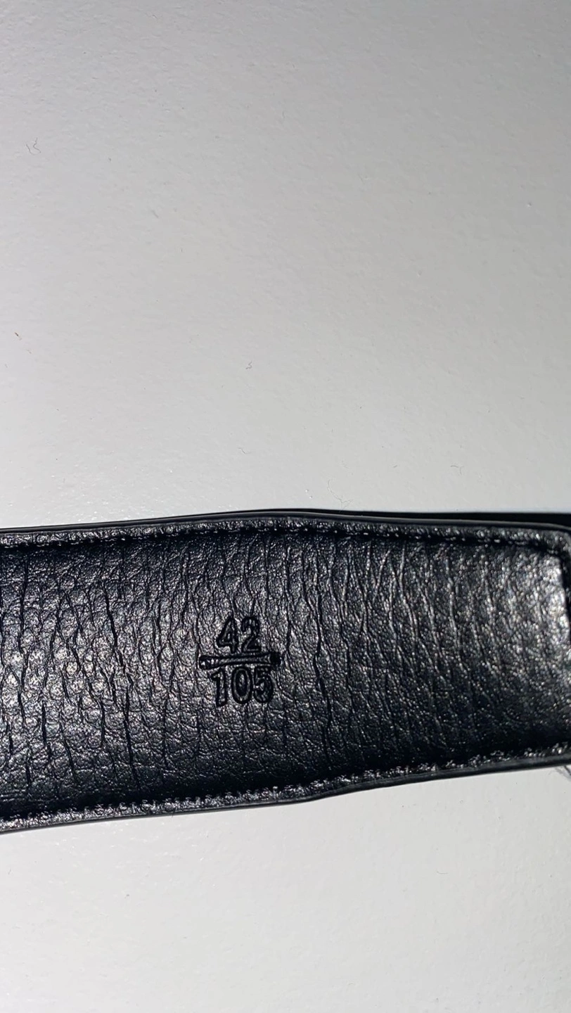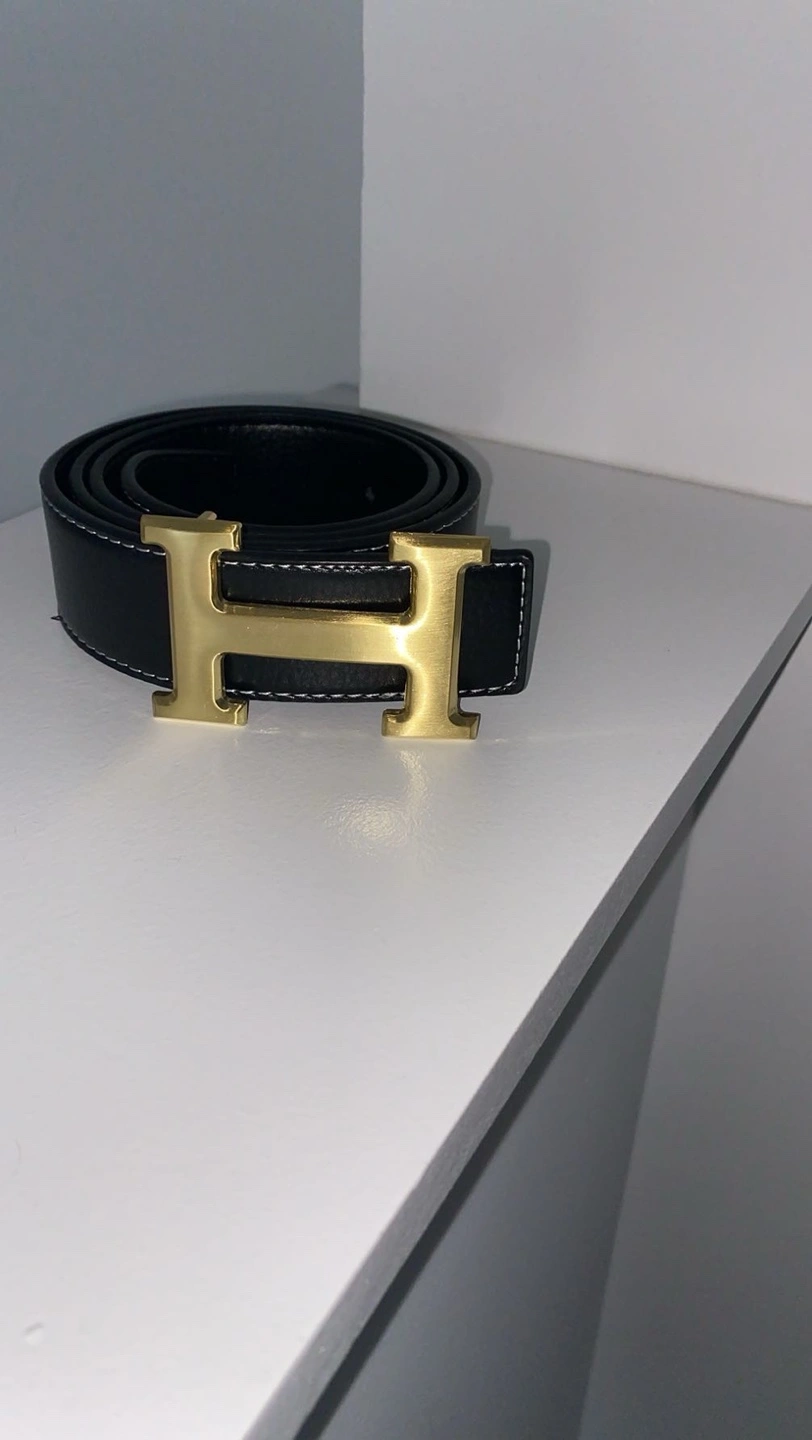 Black leather belt with a gold H buckle. Size 42.